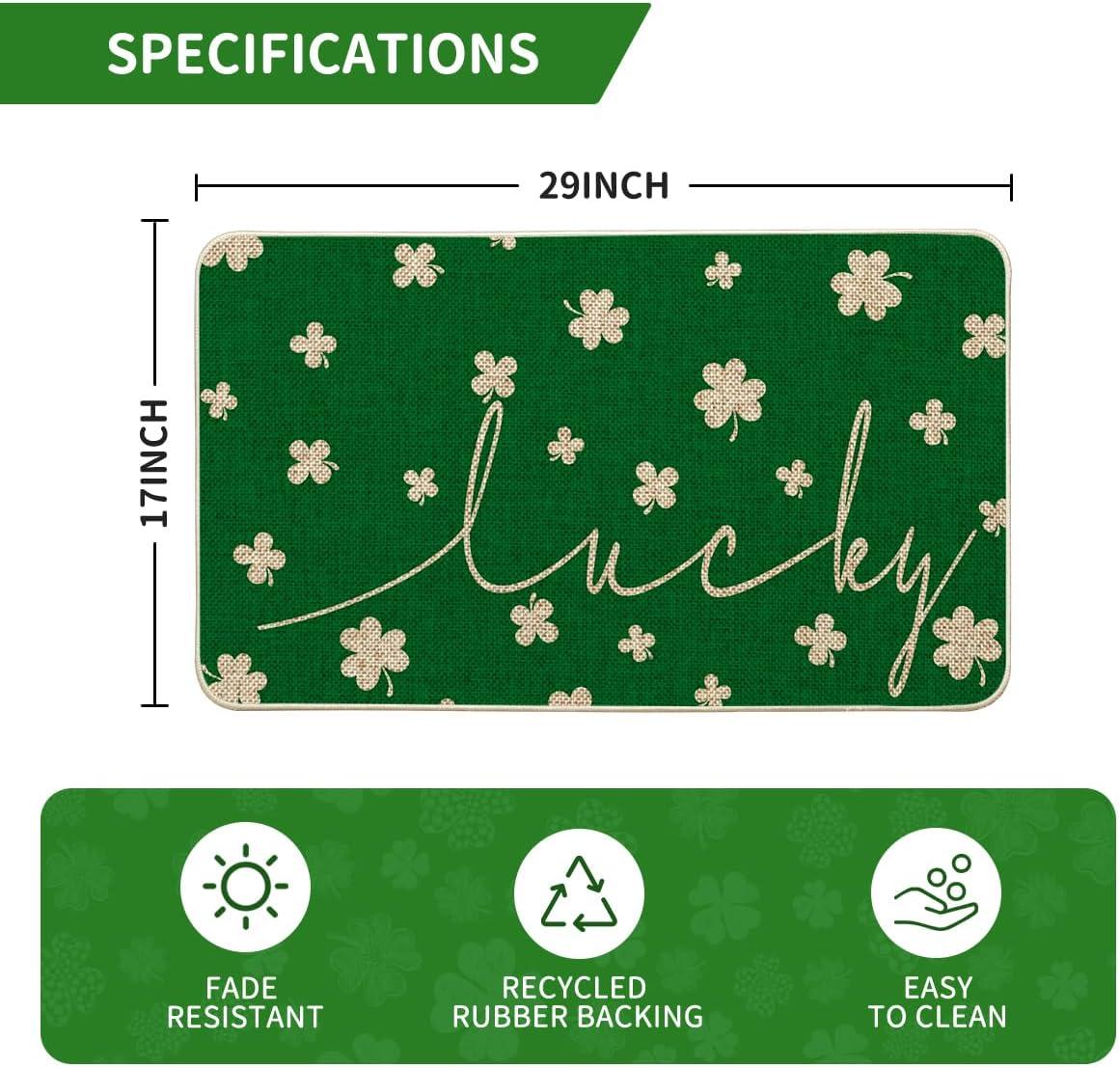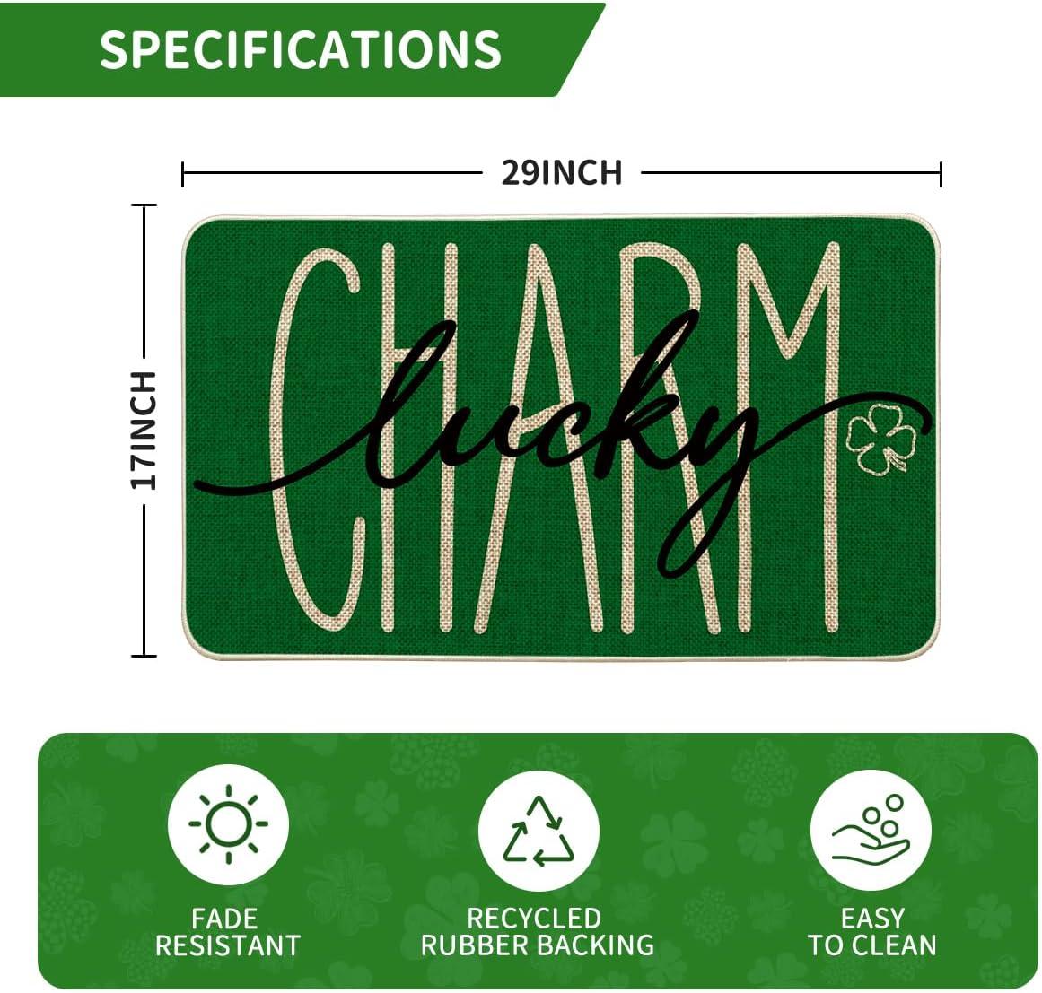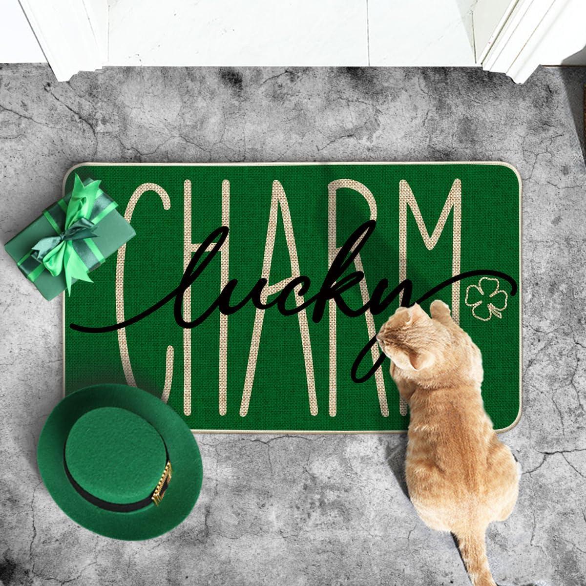 Artoid Mode Lucky Charm St. Patrick’s Day Welcome Decorative Doormat, Seasonal Spring Low-Profile Rug Switch Mat for Indoor Outdoor 17×29 Inch