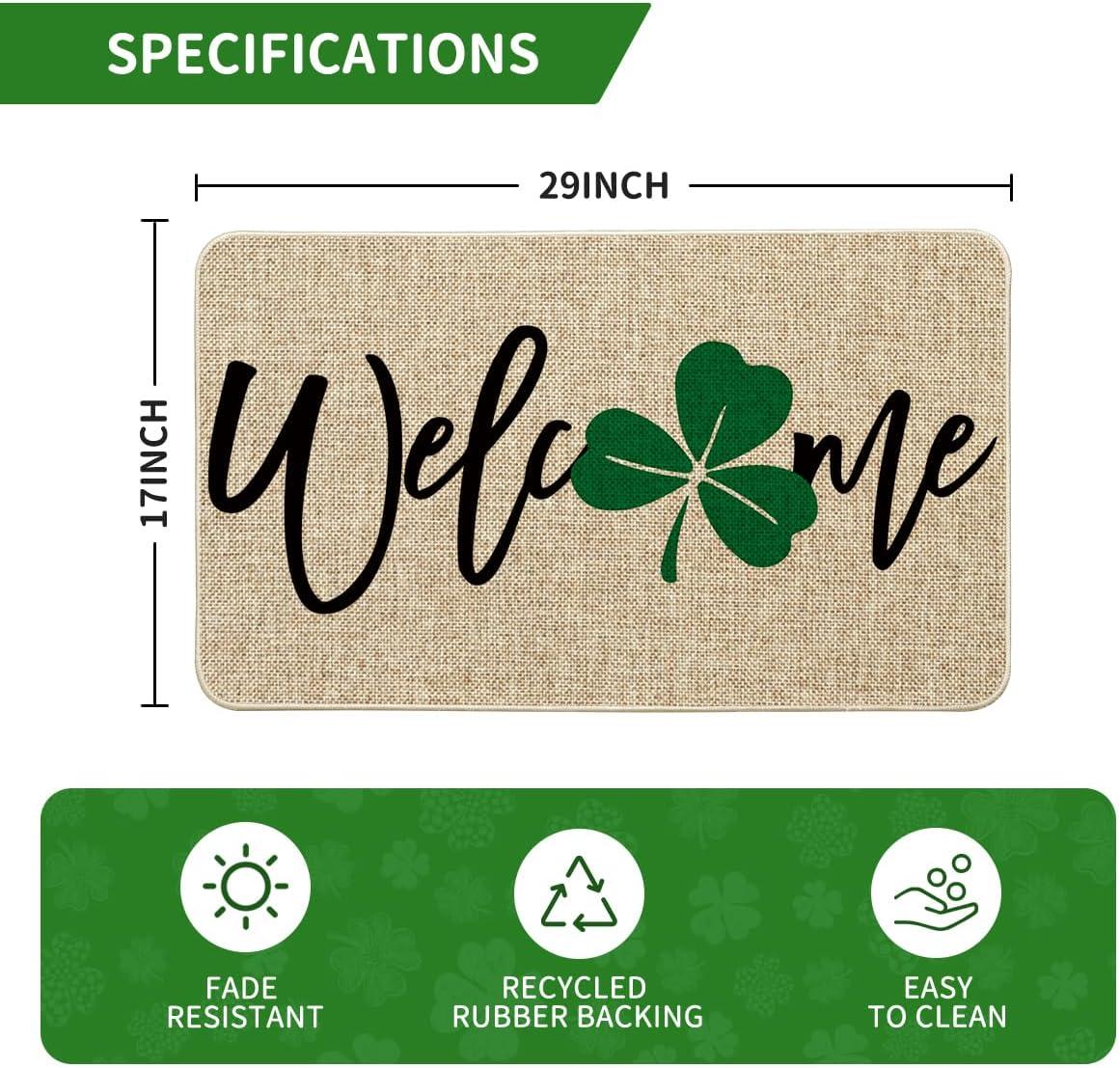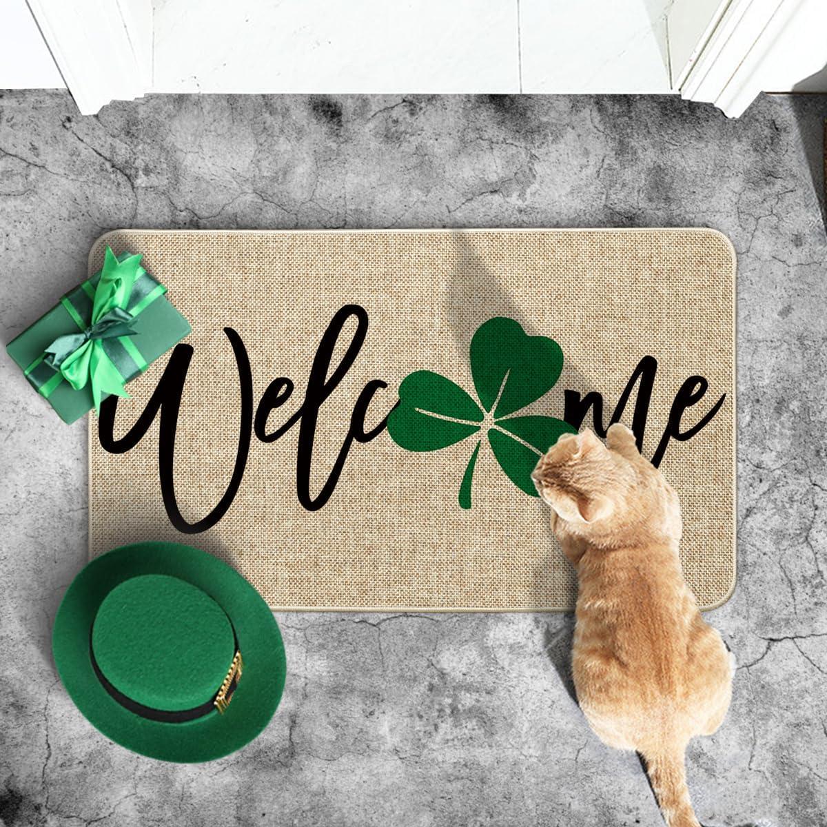 Artoid Mode Green Shamrock Welcome St. Patrick’s Day Doormat, Spring Home Decor Low-Profile Switch Rug Door Mat Floor Mat for Indoor Outdoor 17×29 Inch