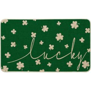 Artoid Mode Lucky Shamrock St. Patrick’s Day Welcome Decorative Doormat, Seasonal Spring Low-Profile Rug Switch Mat for Indoor Outdoor 17×29 Inch