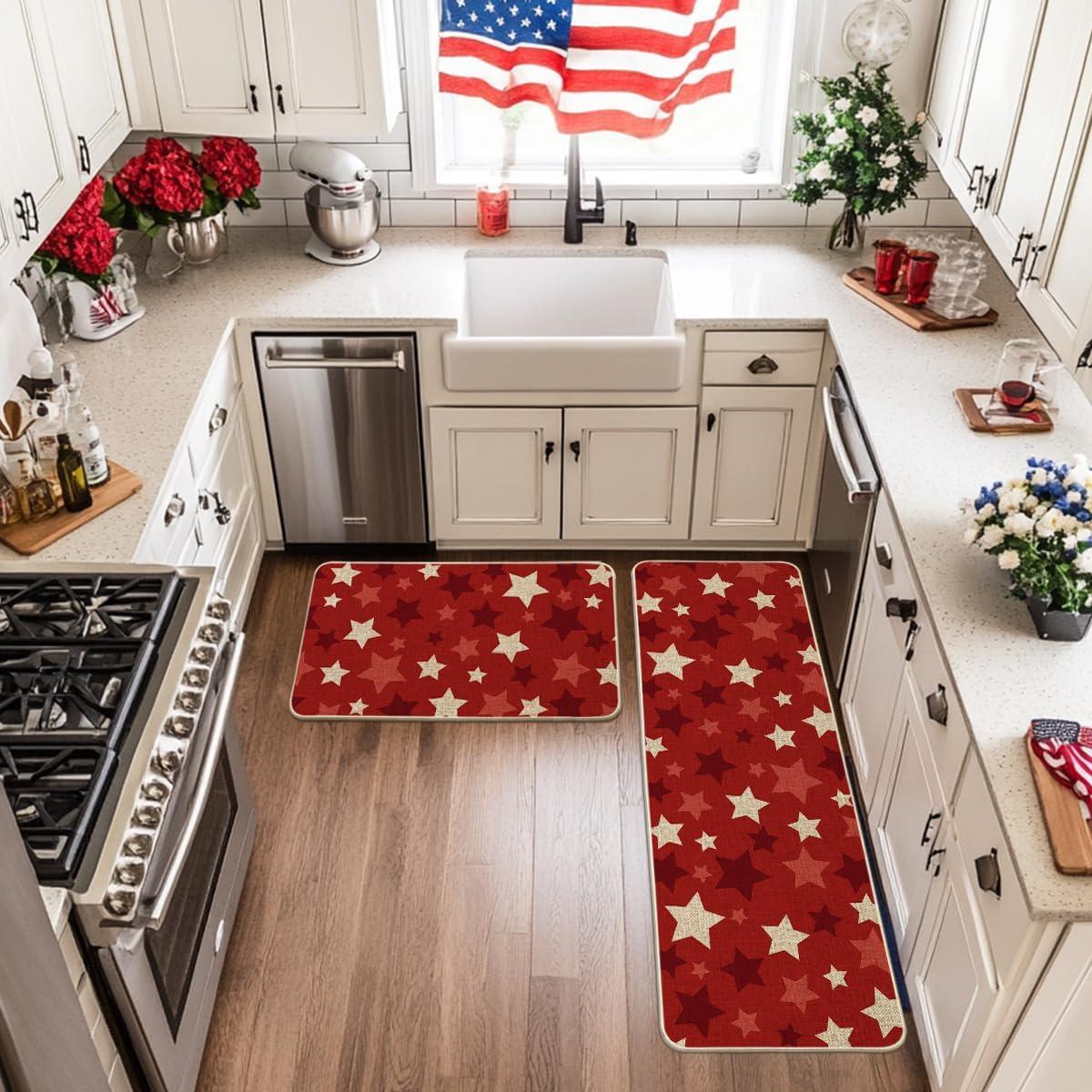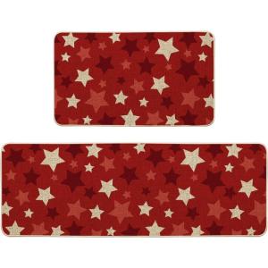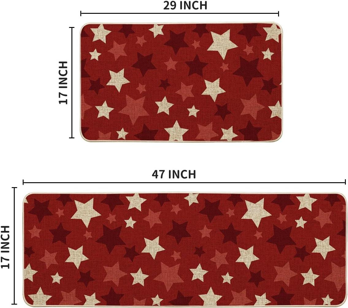 Artoid Mode Red Stars Patriotic 4TH of July Kitchen Mats Set of 2, Memorial Day Home Decor Kitchen Rugs for Floor – 17×29 and 17×47 Inch