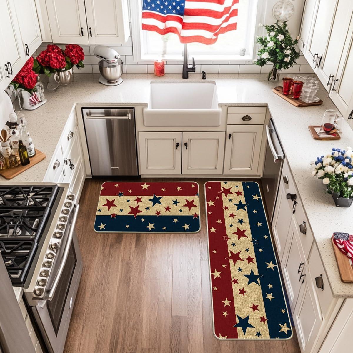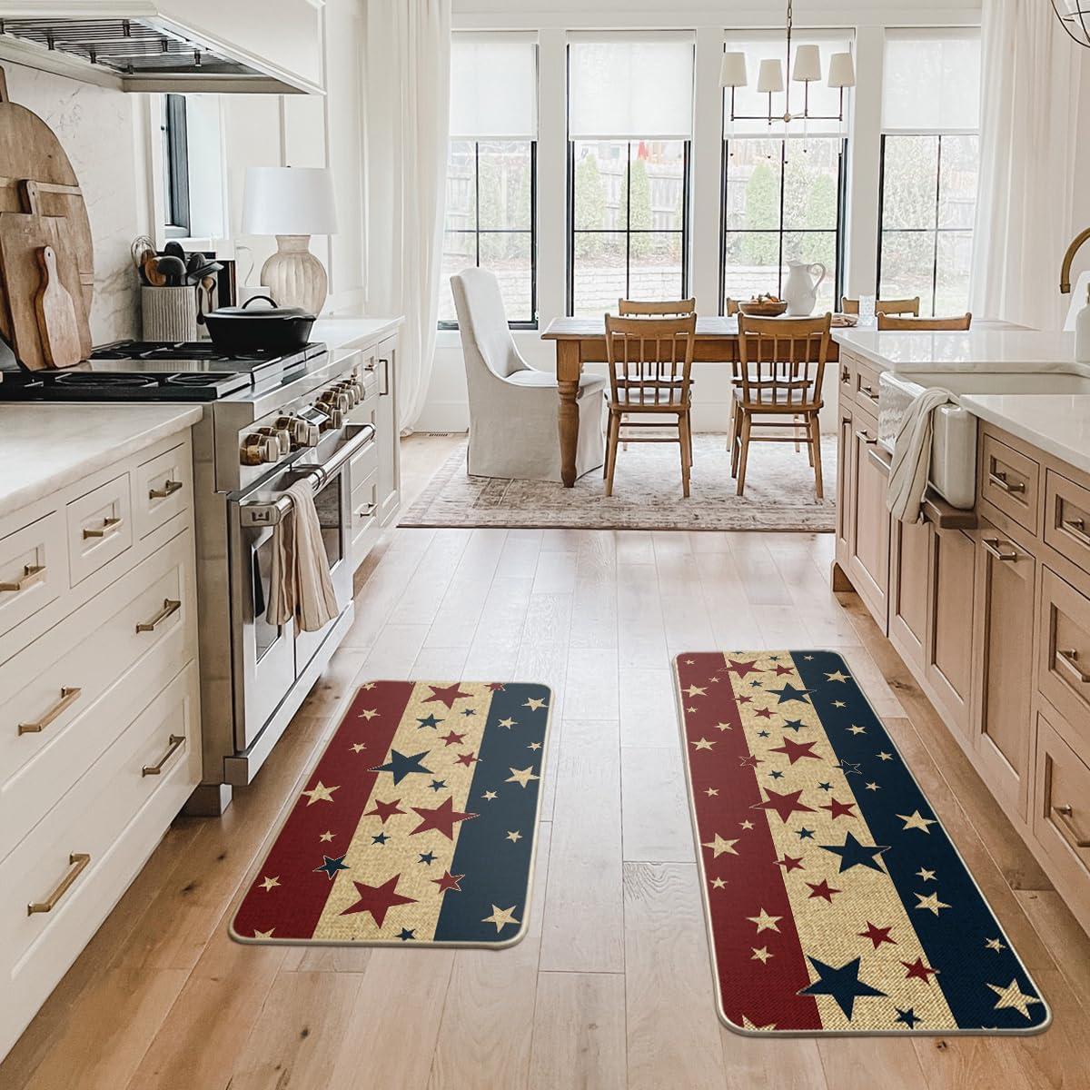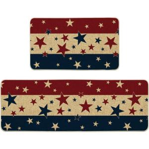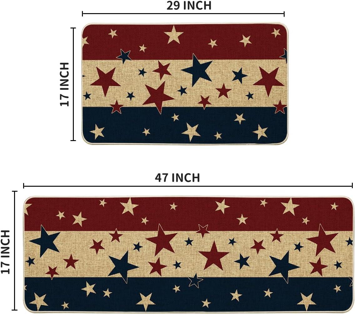Artoid Mode Stars and Stripes 4TH of July Patriotic Kitchen Mats Set of 2, Memorial Day Home Decor Kitchen Rugs for Floor – 17×29 and 17×47 Inch