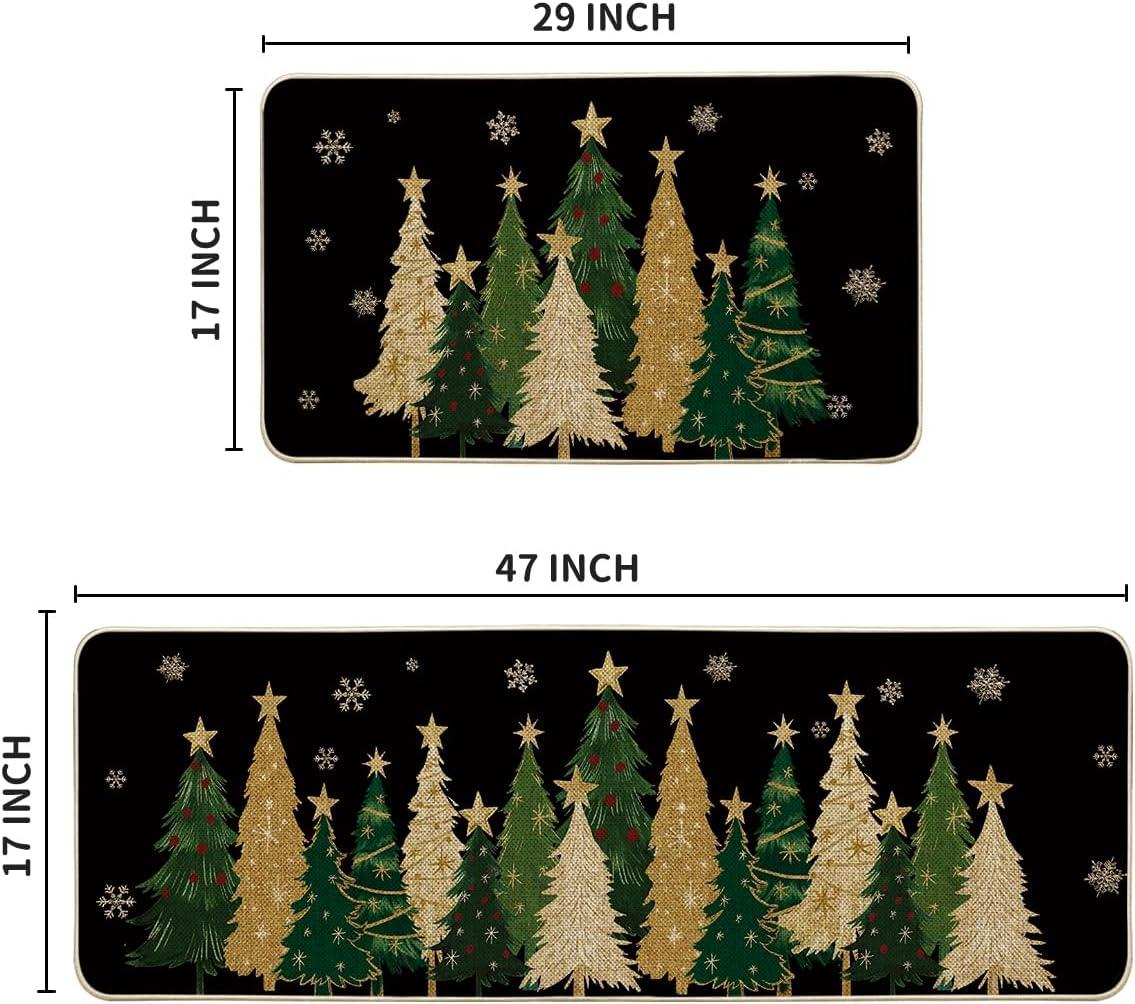 Artoid Mode Golden Xmas Tree Ornament Christmas Kitchen Mats Set of 2, Winter Low-Profile Home Decor Kitchen Rugs for Floor – 17×29 and 17×47 Inch