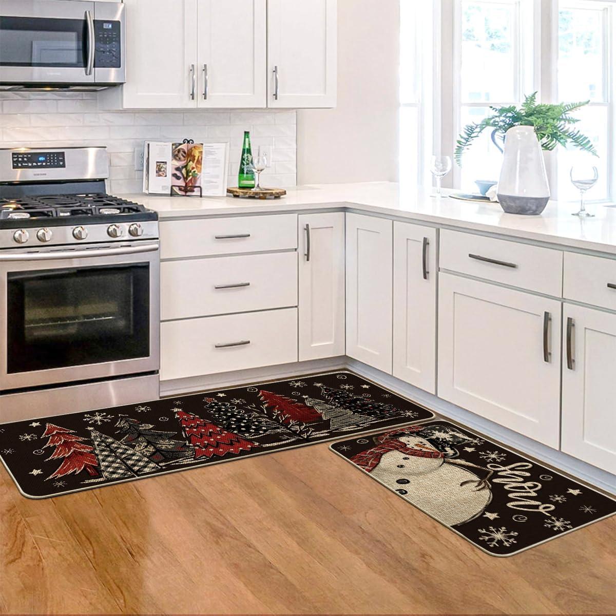 Artoid Mode Black Snowflakes Xmas Trees Christmas Kitchen Mats Set of 2, Winter Low-Profile Home Decor Kitchen Rugs for Floor – 17×29 and 17×47 Inch(Black)