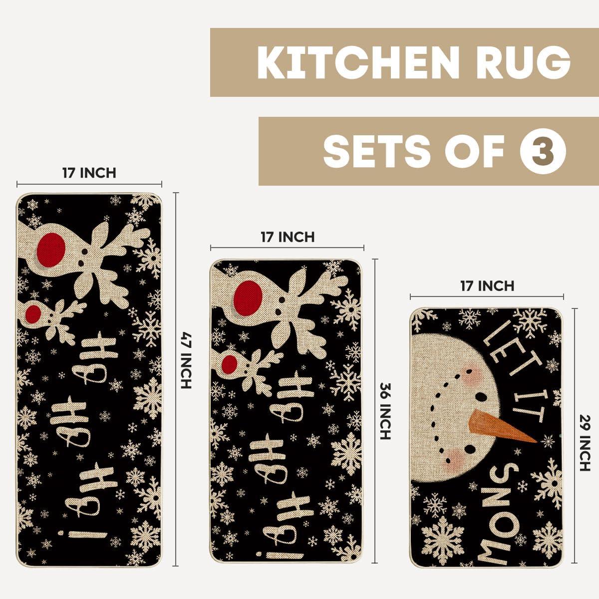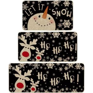 Artoid Mode Snowman Deer Let It Snow Snowflake Christmas Kitchen Mats Set of 2, Winter Decor Low-Profile Kitchen Rugs for Floor – 17×29 and 17×47 Inch(Black)