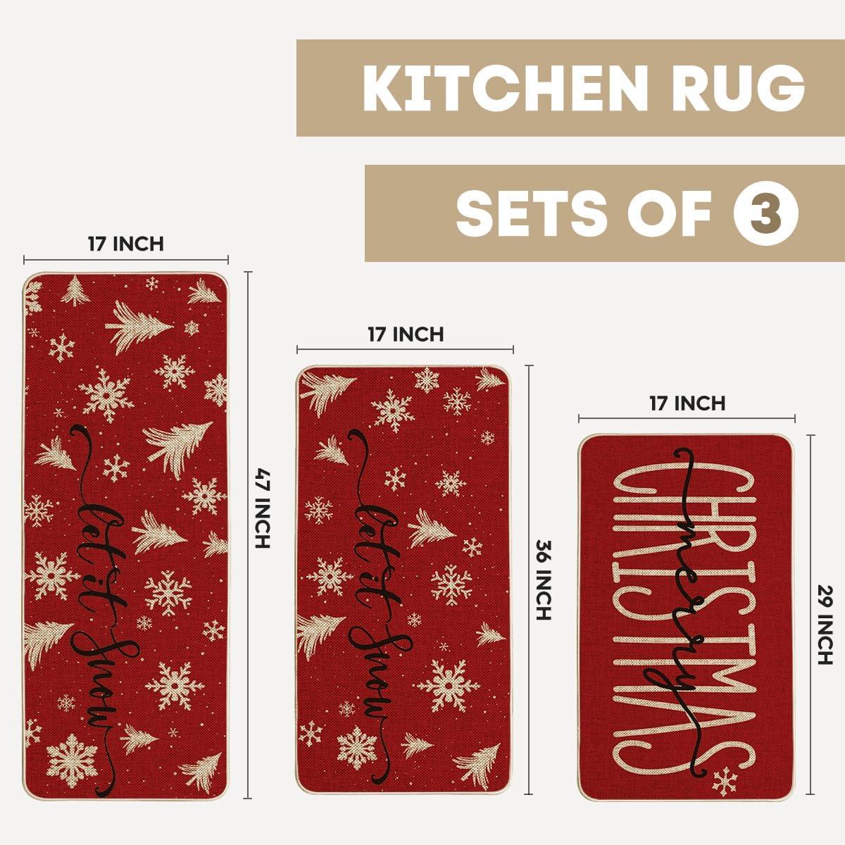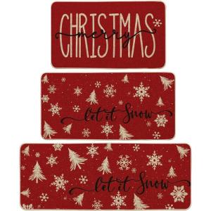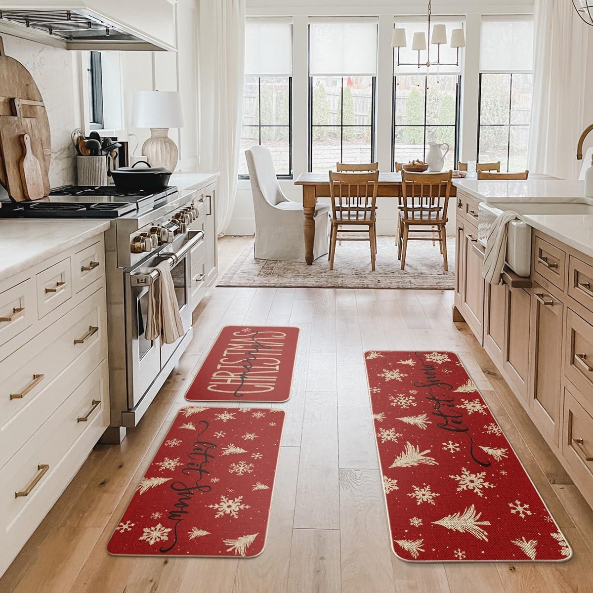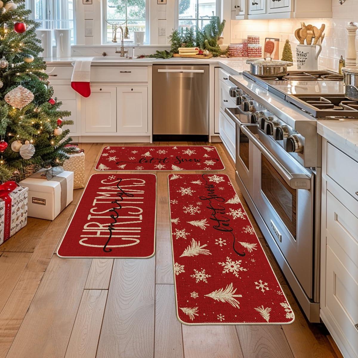 Artoid Mode Xmas Trees Snowflake Let It Snow Merry Christmas Kitchen Mats Set of 2, Winter Decor Low-Profile Kitchen Rugs – 17×29 and 17×47 Inch(Red)