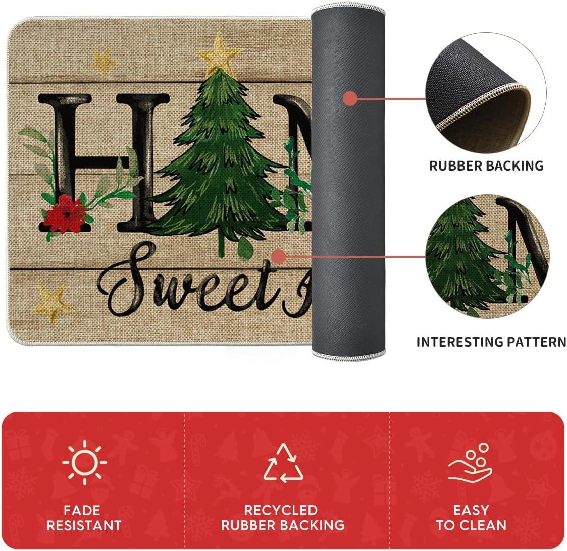 Artoid Mode Home Sweet Home Xmas Tree Christmas Kitchen Mats Set of 2, Winter Low-Profile Home Decor Kitchen Rugs for Floor – 17×29 and 17×47 Inch