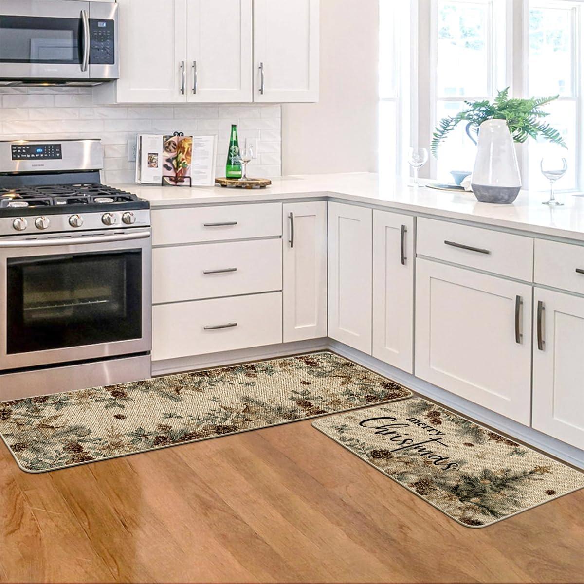 Artoid Mode Pinecone Tree Ornament Merry Christmas Kitchen Mats Set of 2, Winter Low-Profile Home Decor Kitchen Rugs for Floor – 17×29 and 17×47 Inch
