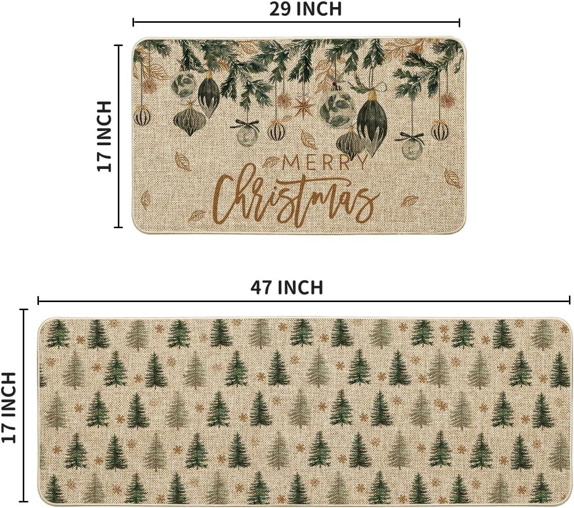 Artoid Mode Xmas Tree Ornament Merry Christmas Kitchen Mats Set of 2, Winter Low-Profile Home Decor Kitchen Rugs for Floor – 17×29 and 17×47 Inch