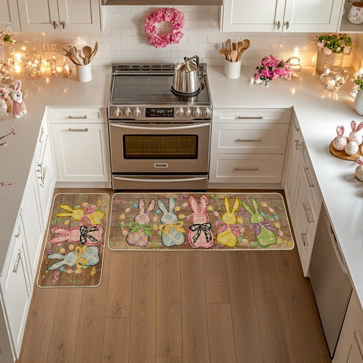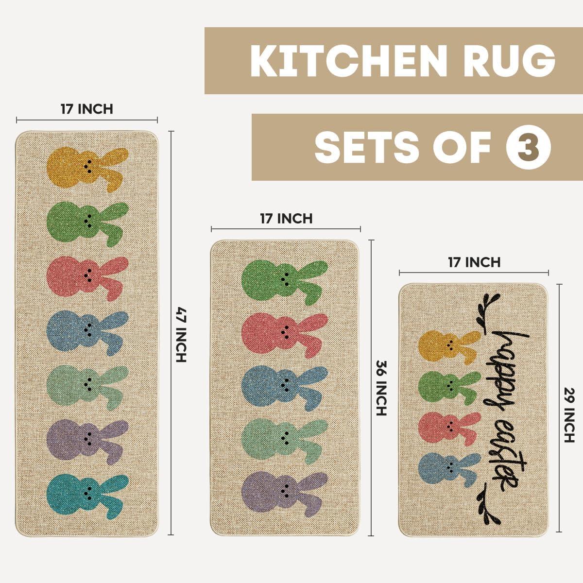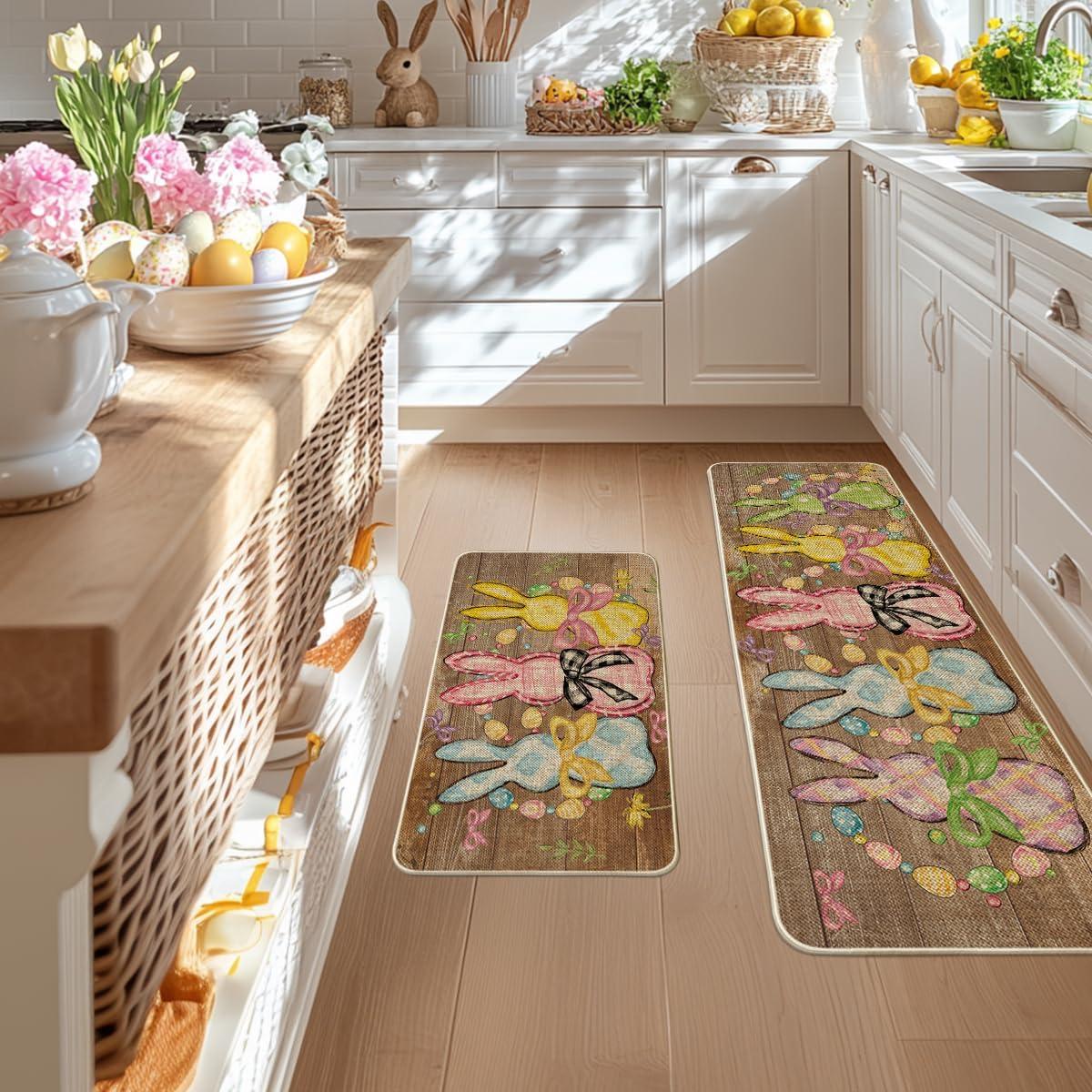 Artoid Mode Happy Easter Rabbits Decorative Kitchen Mats Set of 2, Home Seasonal Spring Easter Holiday Holiday Party Low-Profile Floor Mat – 17×29 and 17×47 Inch(Beige)