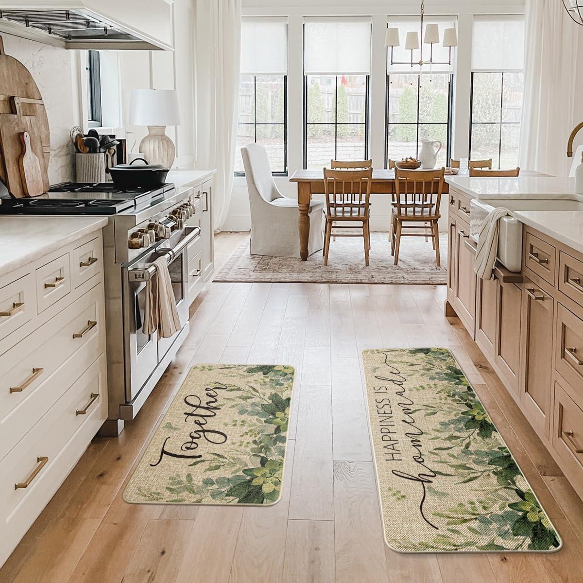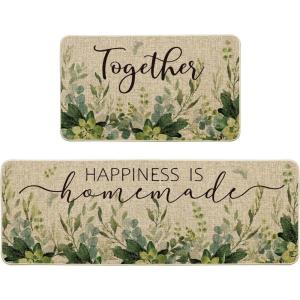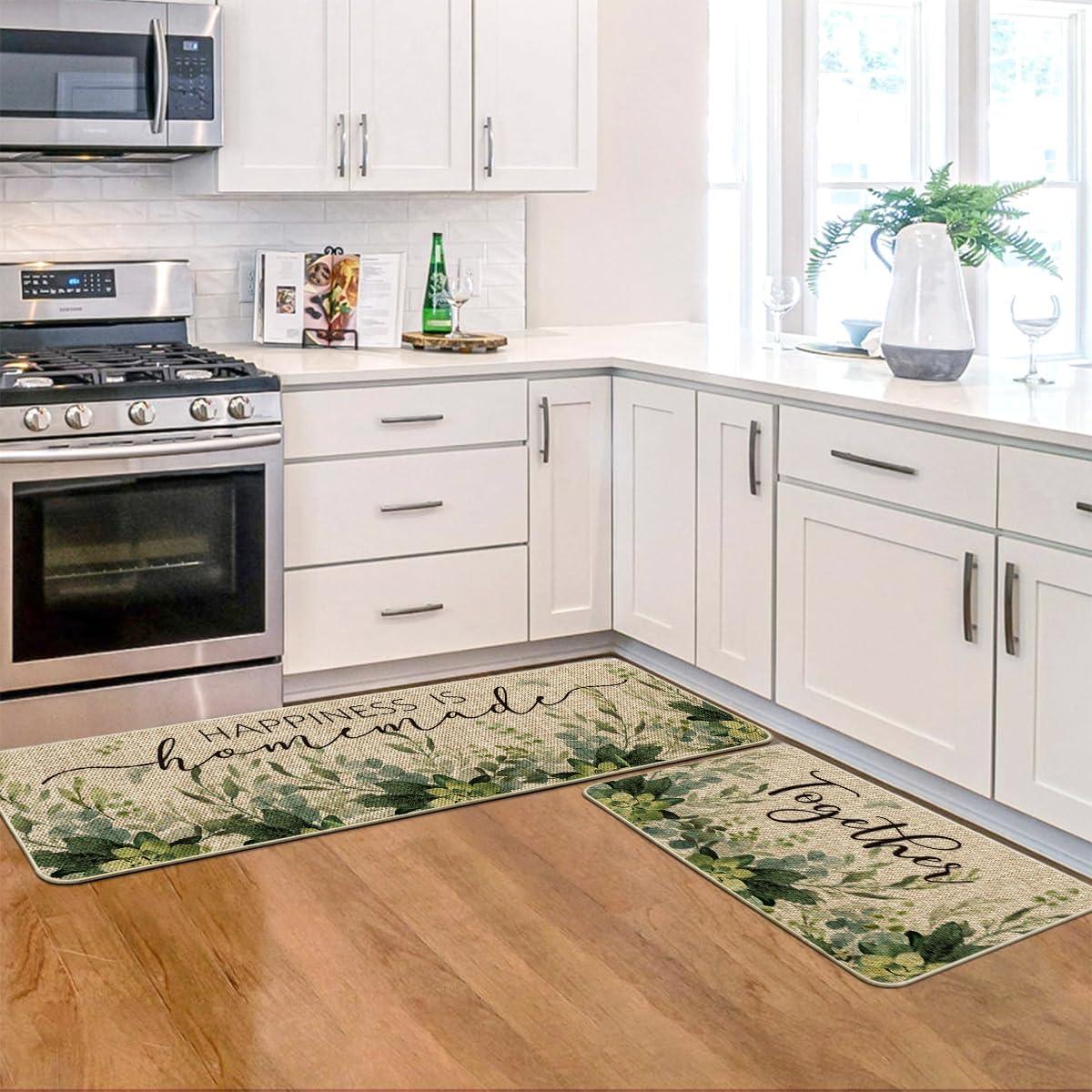 Artoid Mode Eucalyptus Together Spring Kitchen Mats Set of 2, Summer Home Decor Low-Profile Kitchen Rugs for Floor – 17×29 and 17×47 Inch