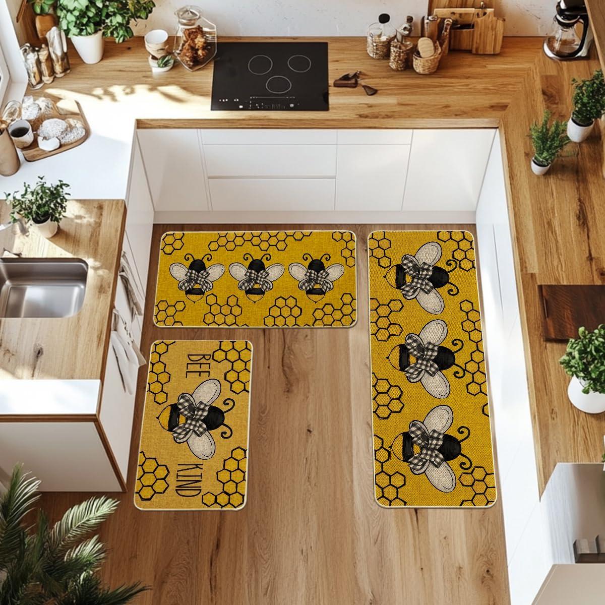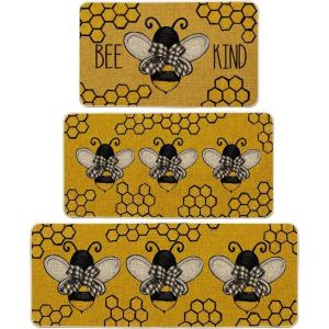 Artoid Mode Yellow Bee Kind Spring Kitchen Mats Set of 2, Summer Home Decor Low-Profile Kitchen Rugs for Floor – 17×29 and 17×47 Inch(Yellow)