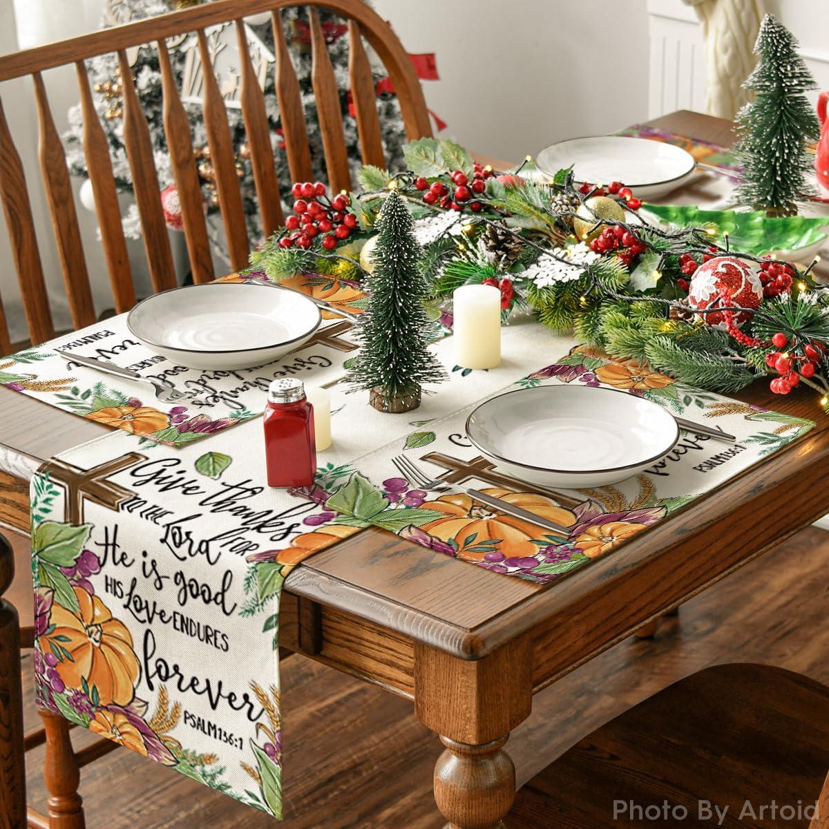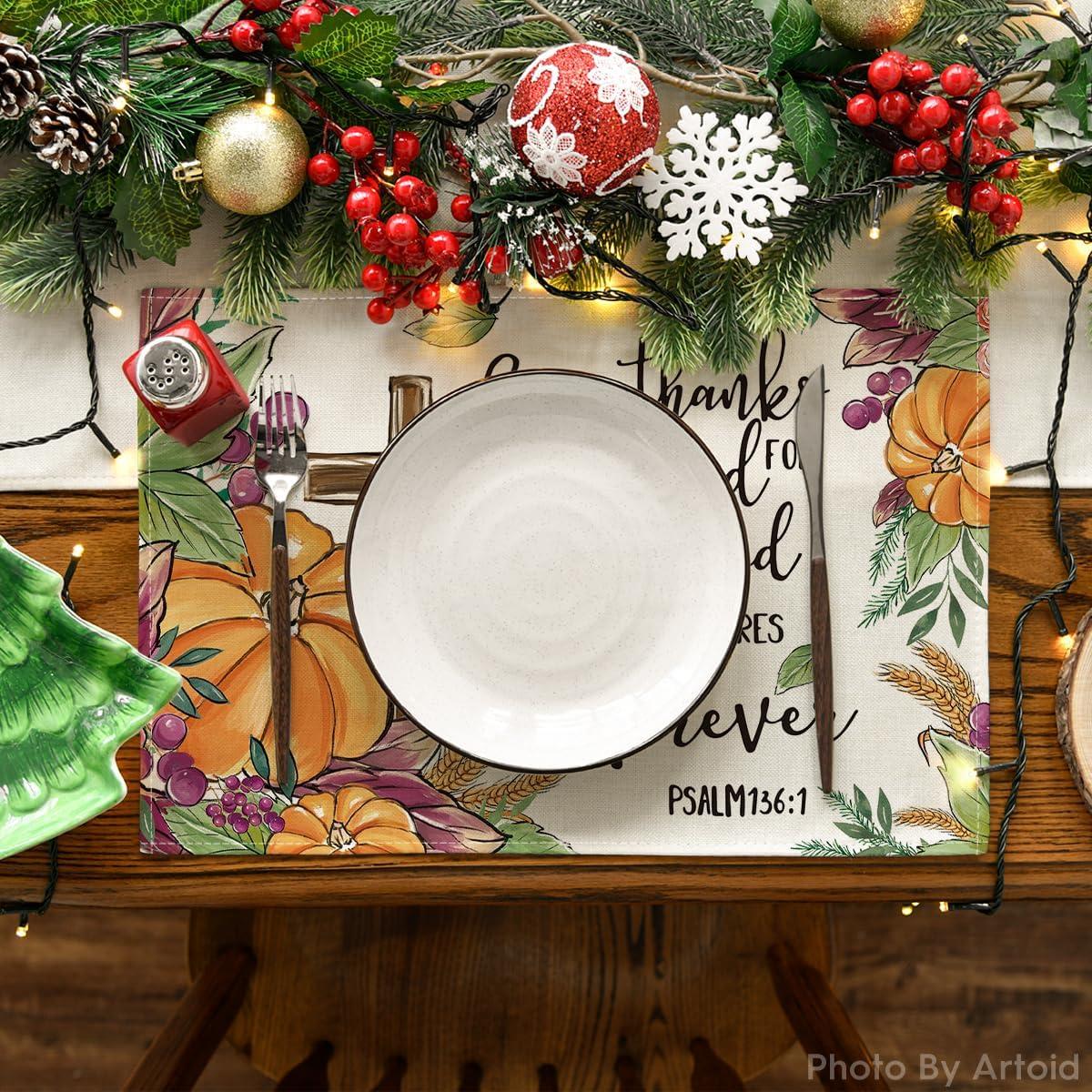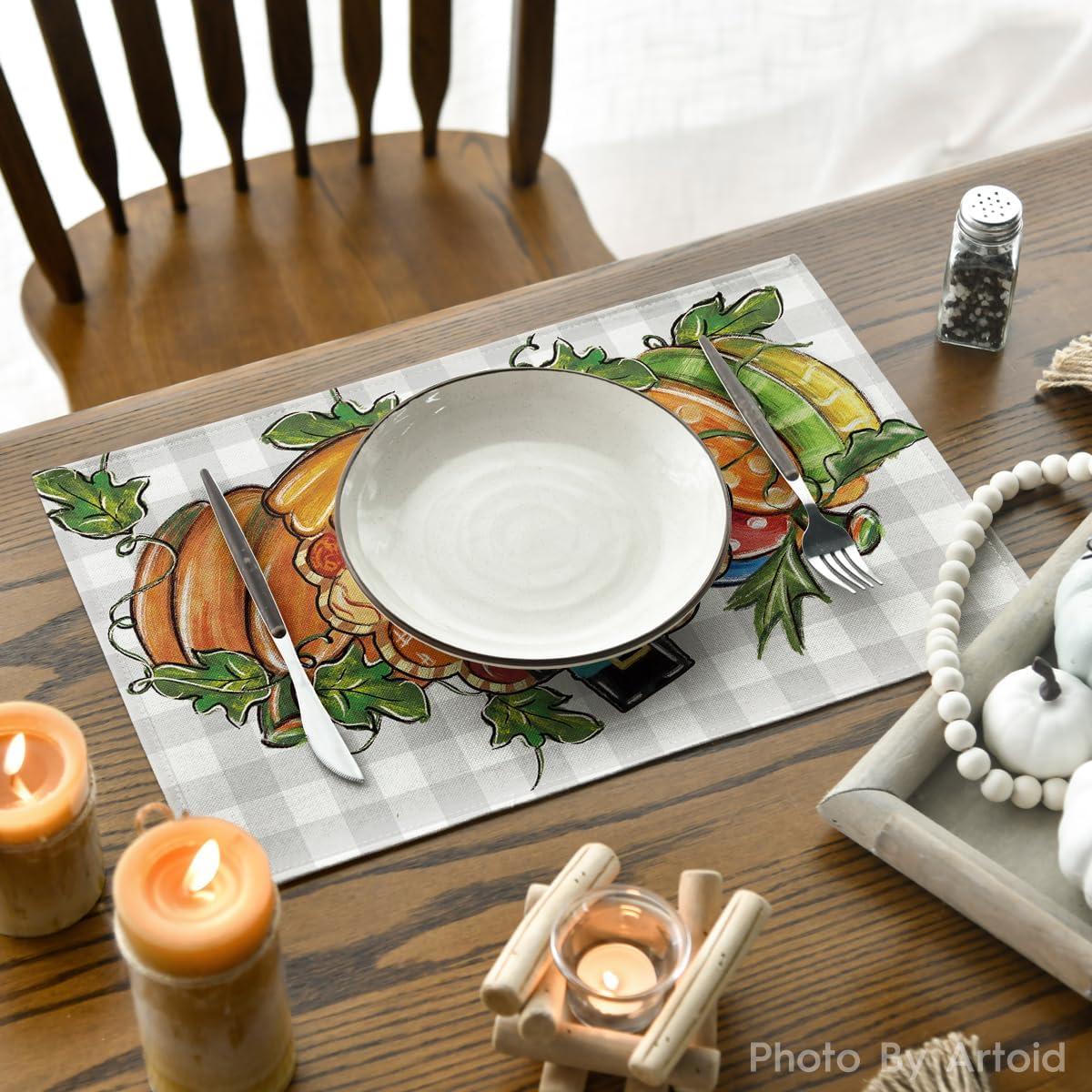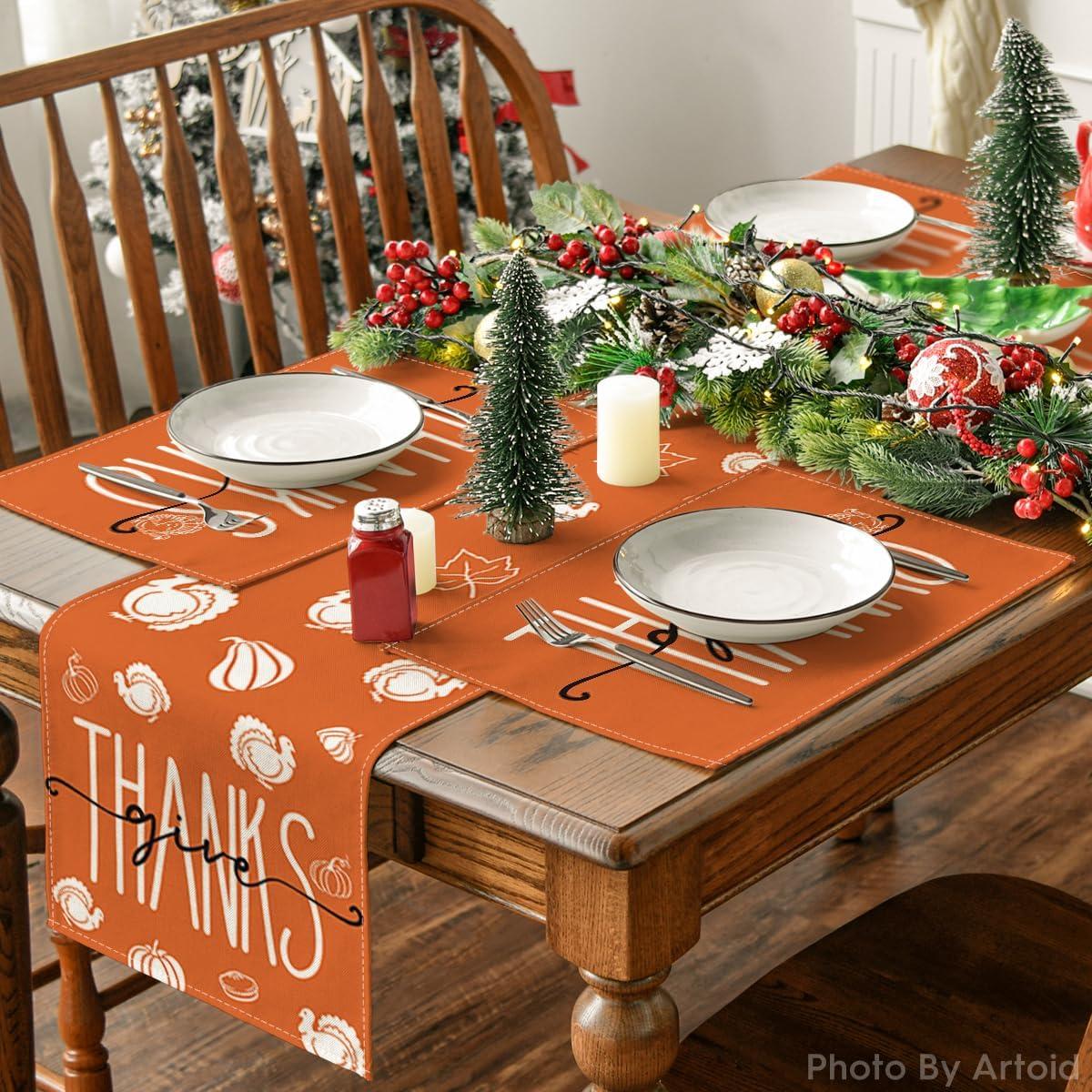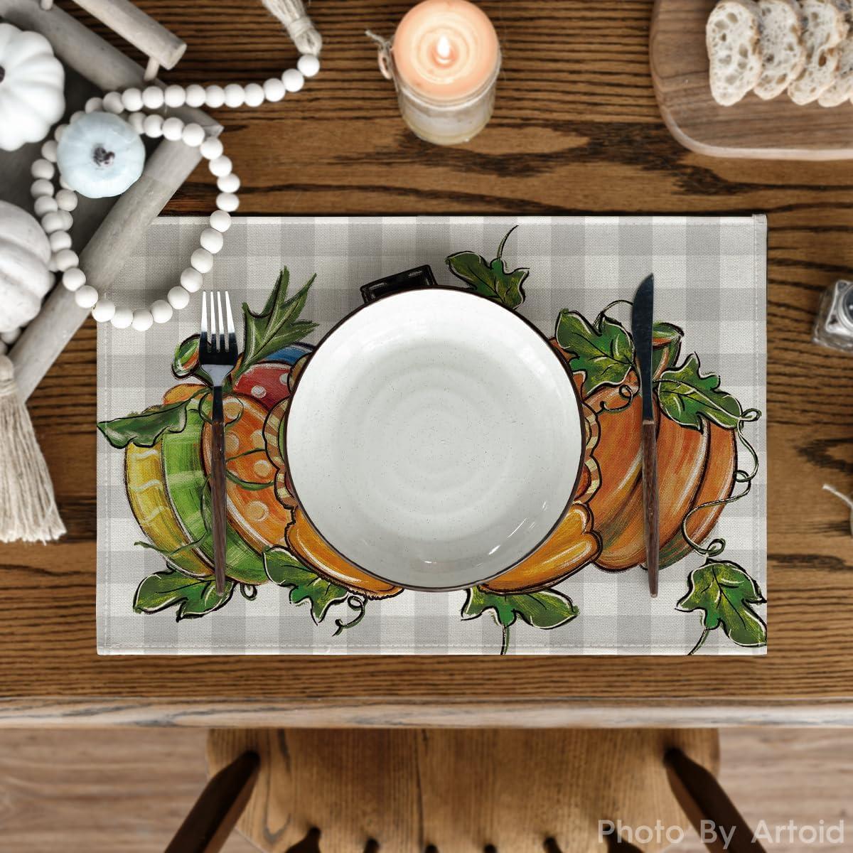 Artoid Mode Pumpkins Give Thanks Turkey Fall Placemats Set of 4, 12×18 Inch Pumpkin Pie Thanksgiving Table Mats for Party Kitchen Dining Decoration(Orange)
