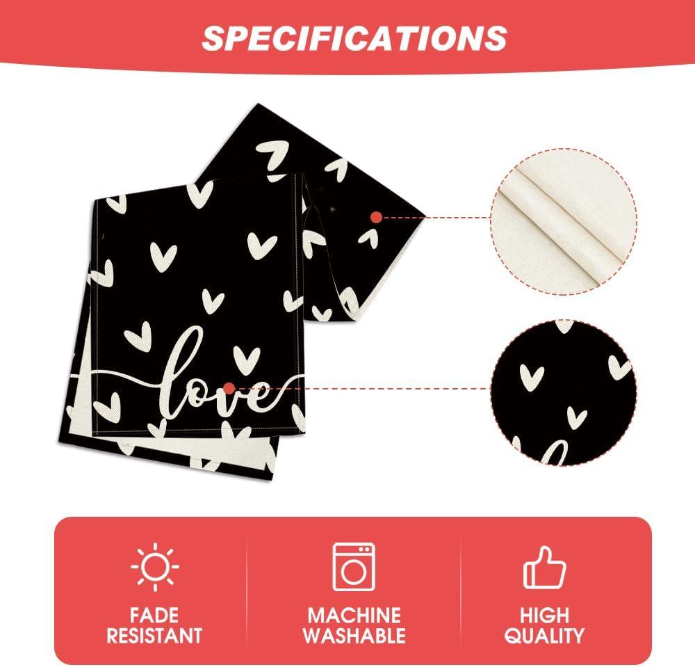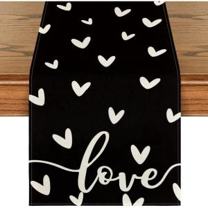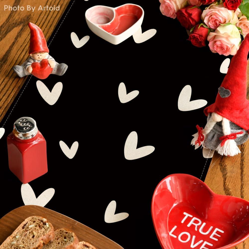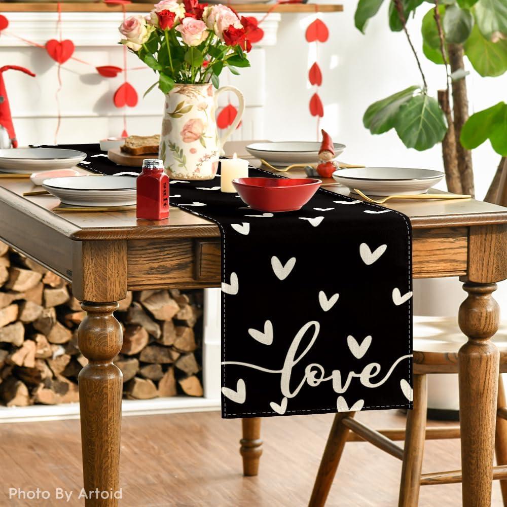 Artoid Mode Pink Love Valentine’s Table Runner, Seasonal Kitchen Dining Table Decoration for Indoor Home Party 13×72 Inch(Black)