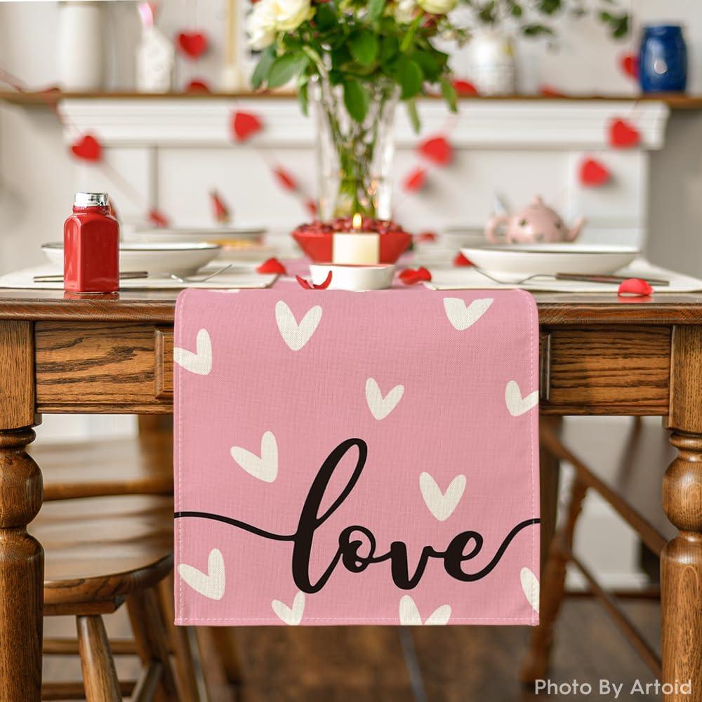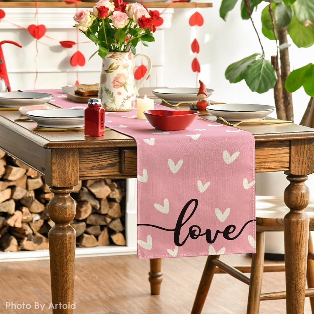 Artoid Mode Pink Love Valentine’s Table Runner, Seasonal Kitchen Dining Table Decoration for Indoor Home Party 13×72 Inch(Pink)