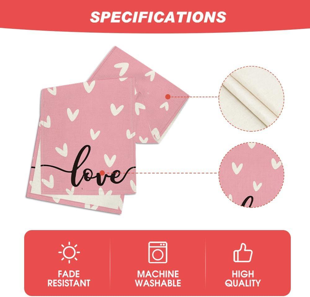 Artoid Mode Pink Love Valentine’s Table Runner, Seasonal Kitchen Dining Table Decoration for Indoor Home Party 13×72 Inch(White)