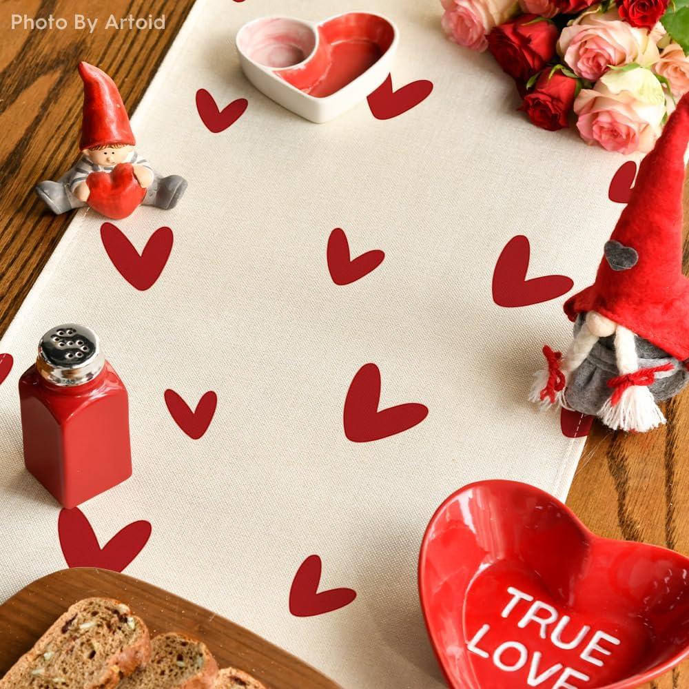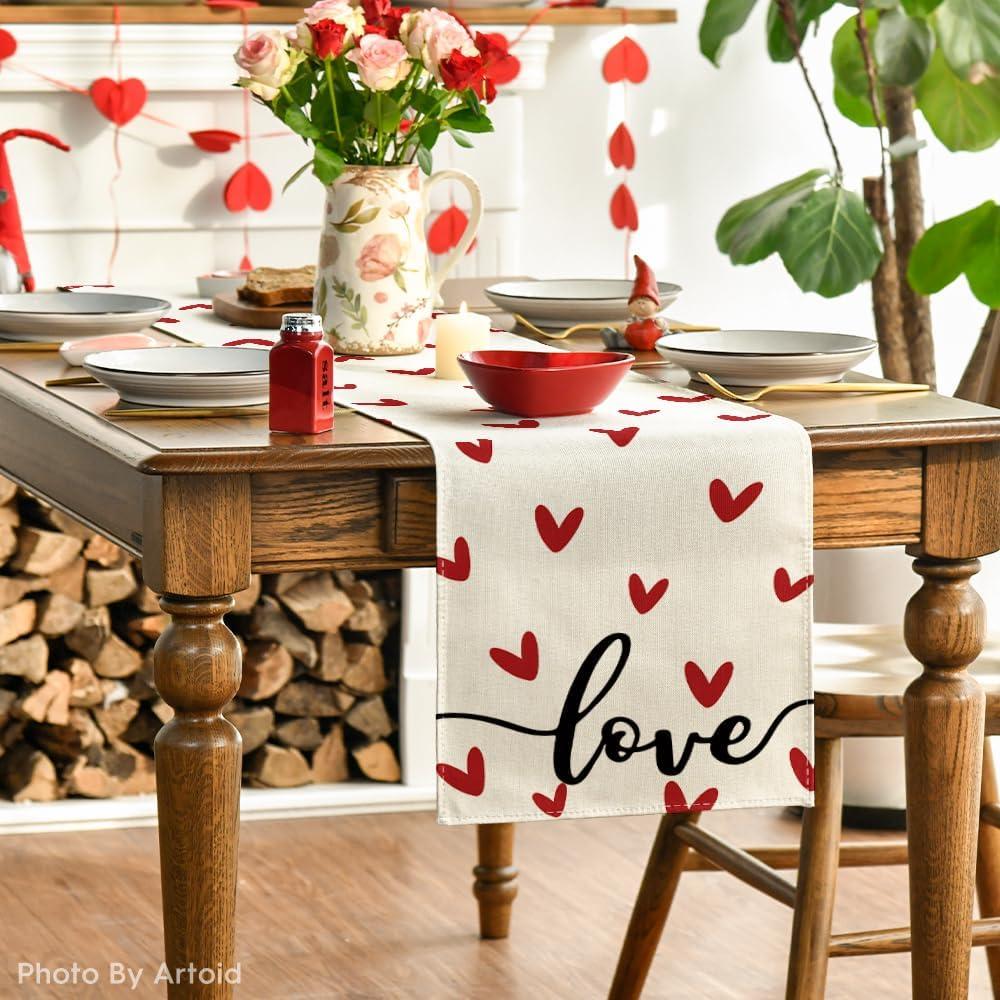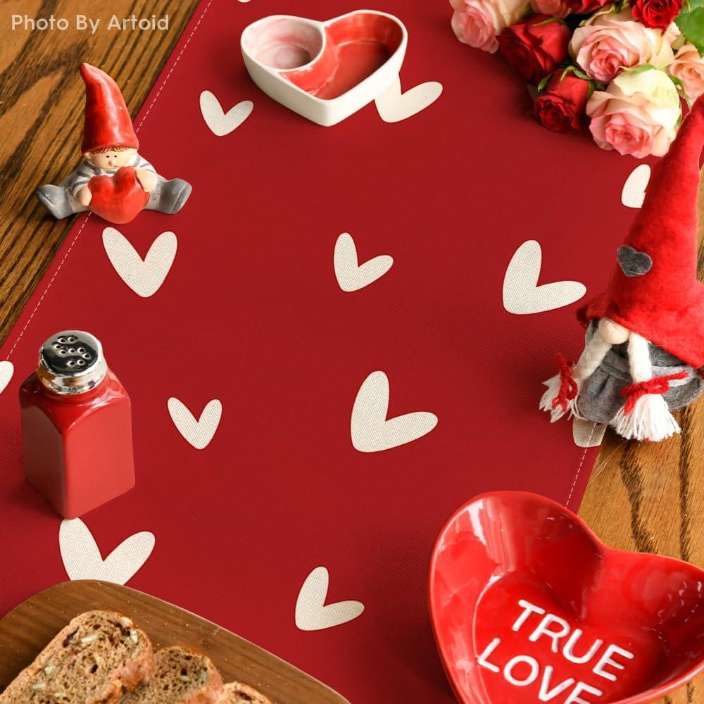 Artoid Mode Pink Love Valentine’s Table Runner, Seasonal Kitchen Dining Table Decoration for Indoor Home Party 13×72 Inch(Red)