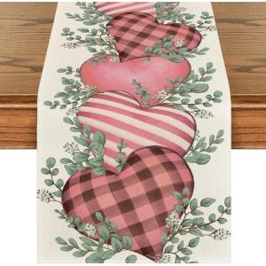 Artoid Mode Eucalyptus Hearts Valentine’s Day Table Runner, Holiday Kitchen Dining Table Decoration for Home Party Indoor 13×72 Inch(Pink)