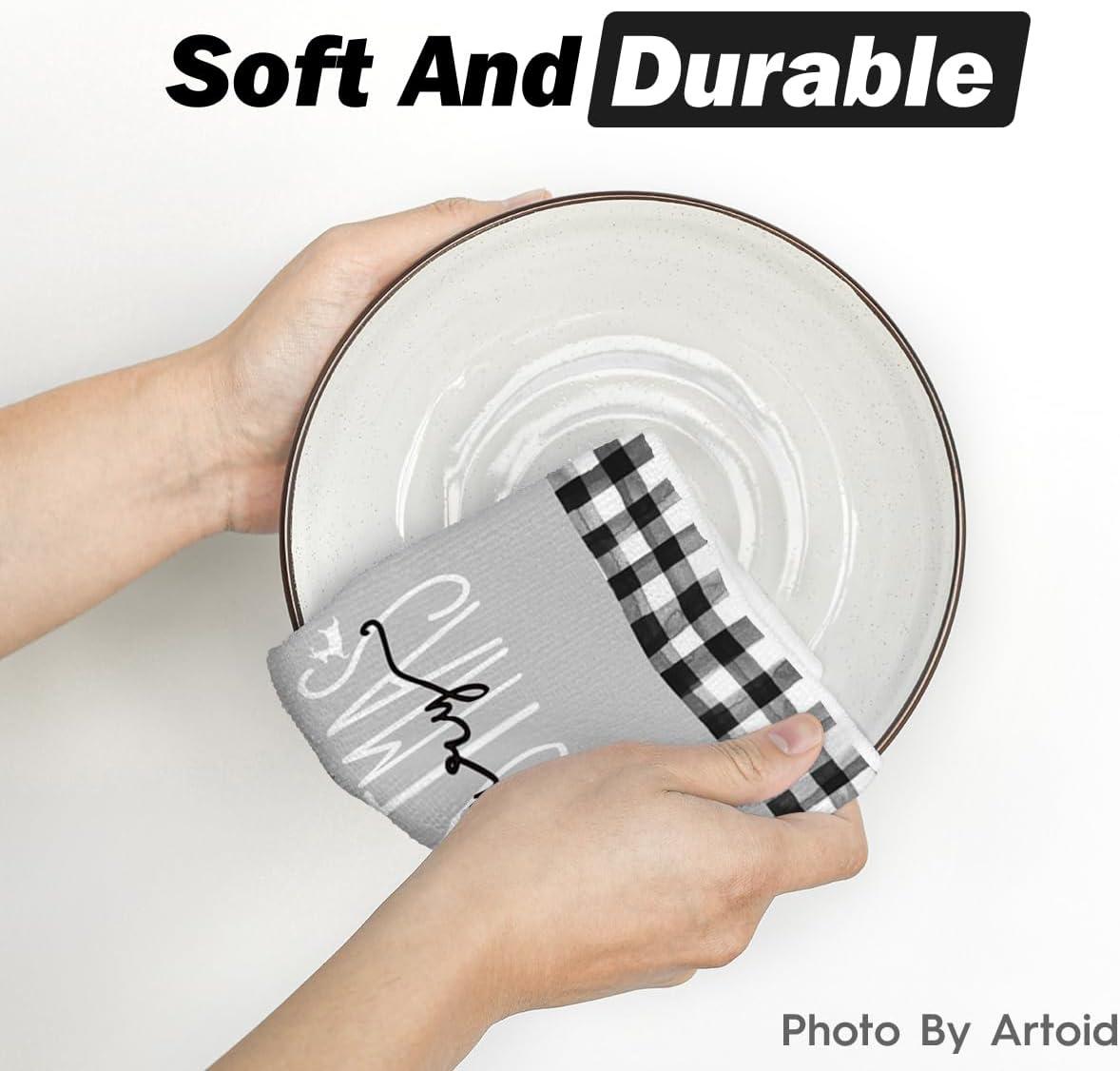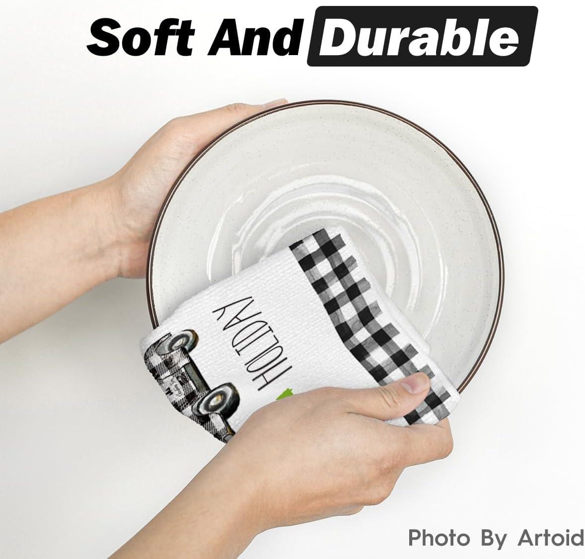 Artoid Mode Black White Truck Christmas Trees Kitchen Dish Towels, 18 x 26 Inch Winter Buffalo Plaid Holiday Ultra Absorbent Drying Cloth Tea Towels Set of 2(Black/Beige)