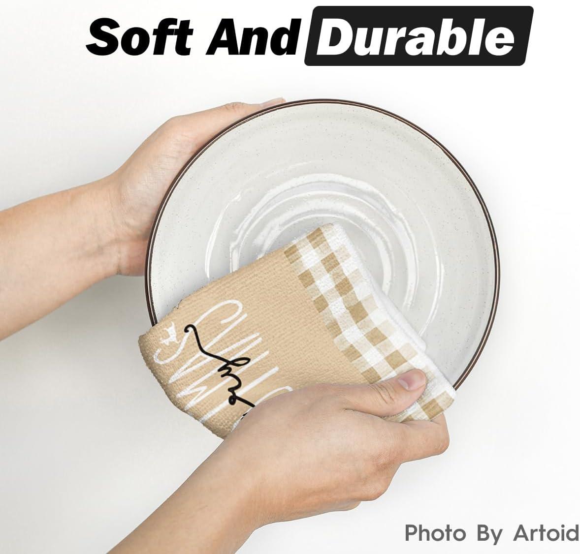 Artoid Mode Black Red Merry Christmas Kitchen Towels Dish Towels, 18×26 Inch Buffalo Plaid Winter Xmas Trees Star Decoration Hand Towels Set of 2(Brown/Beige)