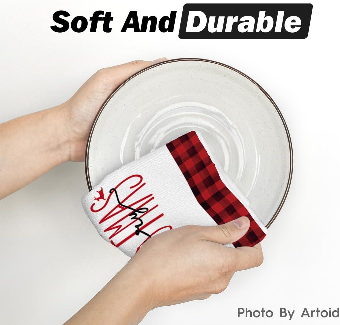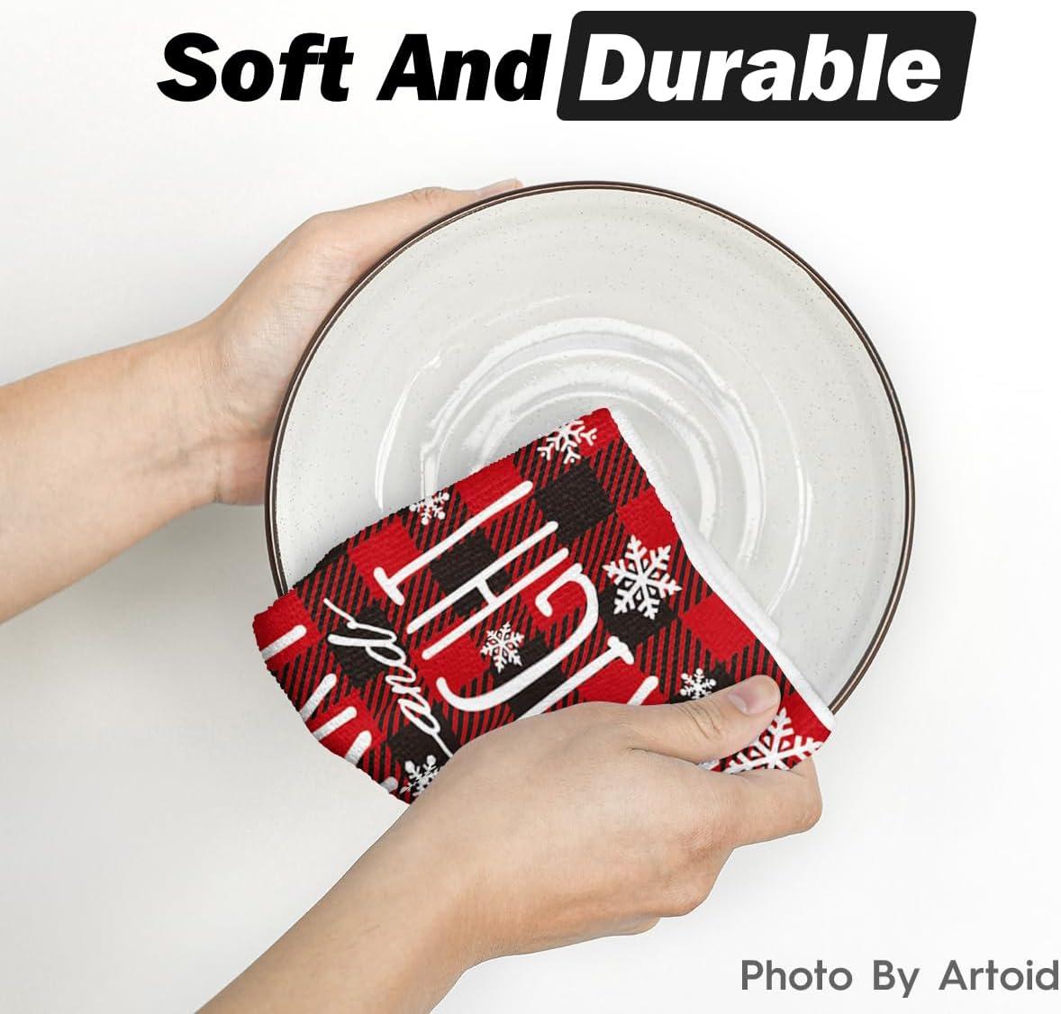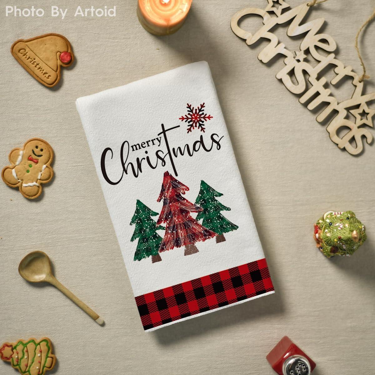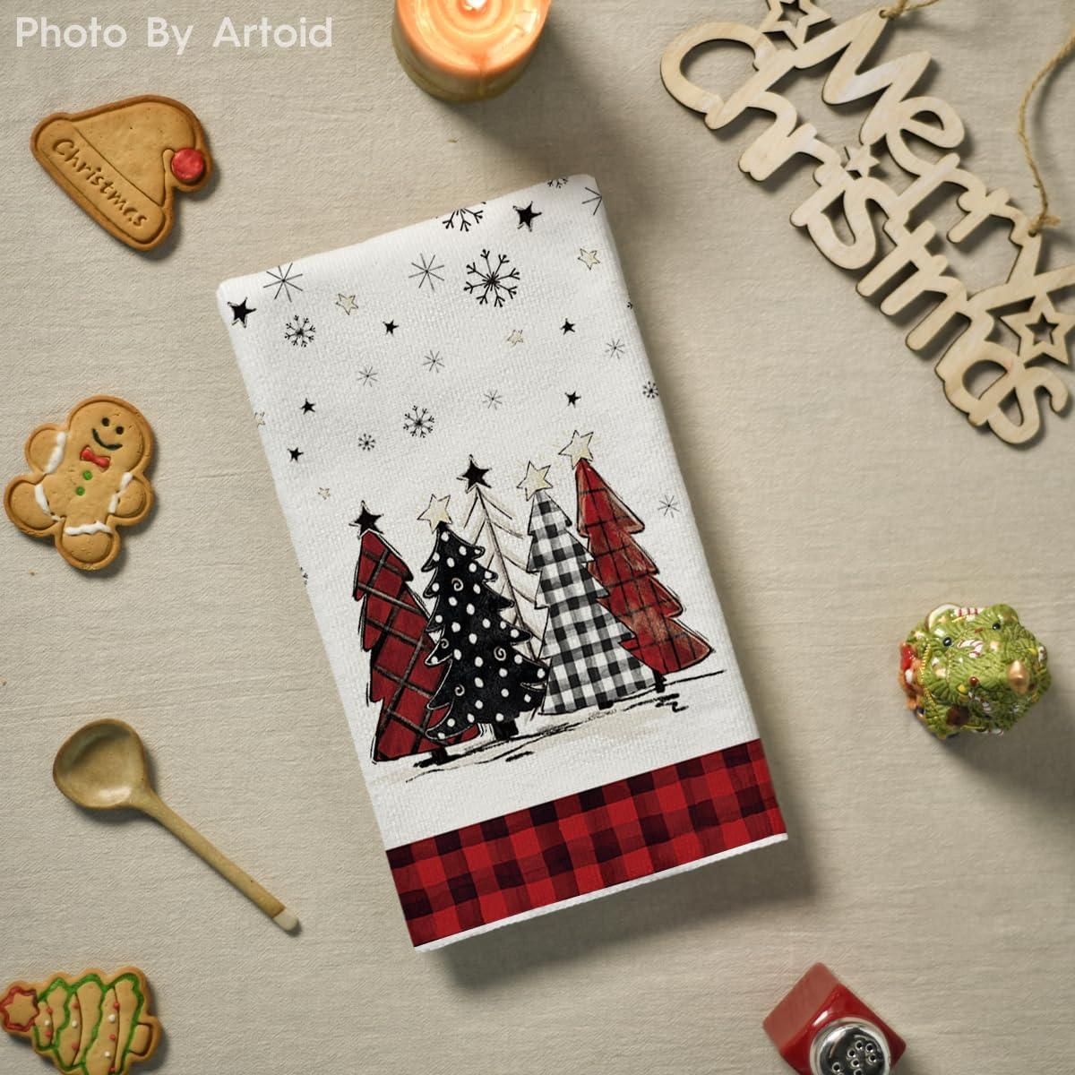 Artoid Mode Buffalo Plaid Tree Christmas Kitchen and Dish Towels, 18 x 26 Inch Ornament Car Winter Holiday Ultra Absorbent Drying Cloth Tea Towels Set of 4(Black/Red)