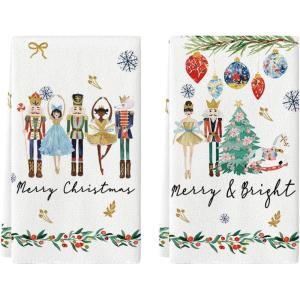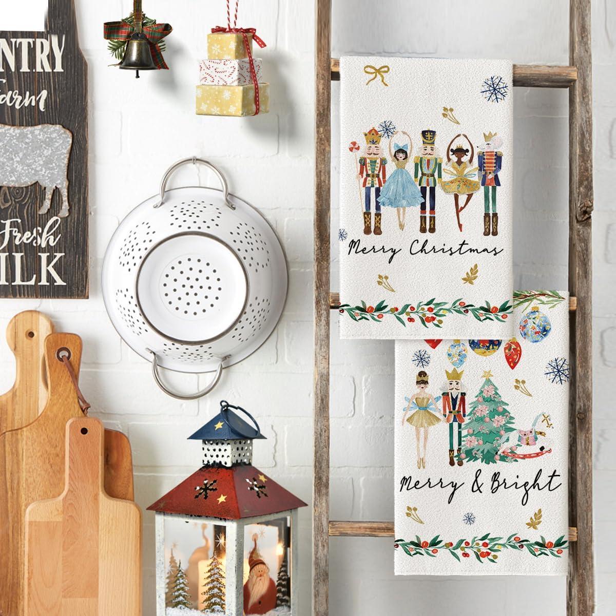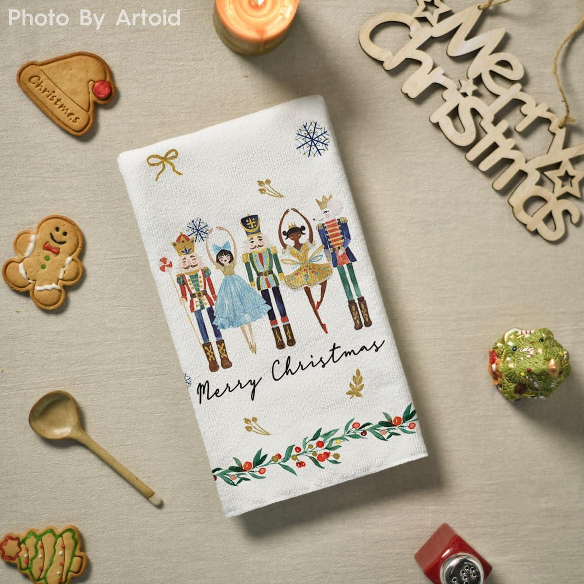 Artoid Mode Nutcrackers Xmas Balls and Trees Merry Christmas Kitchen Towels Dish Towels, 18×26 Inch Snowflakes Decoration Hand Towels Set of 2(Beige)