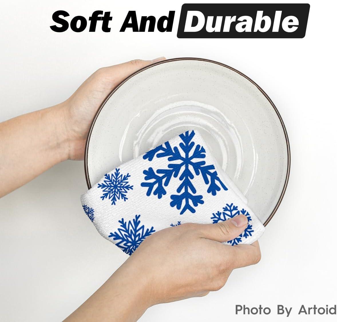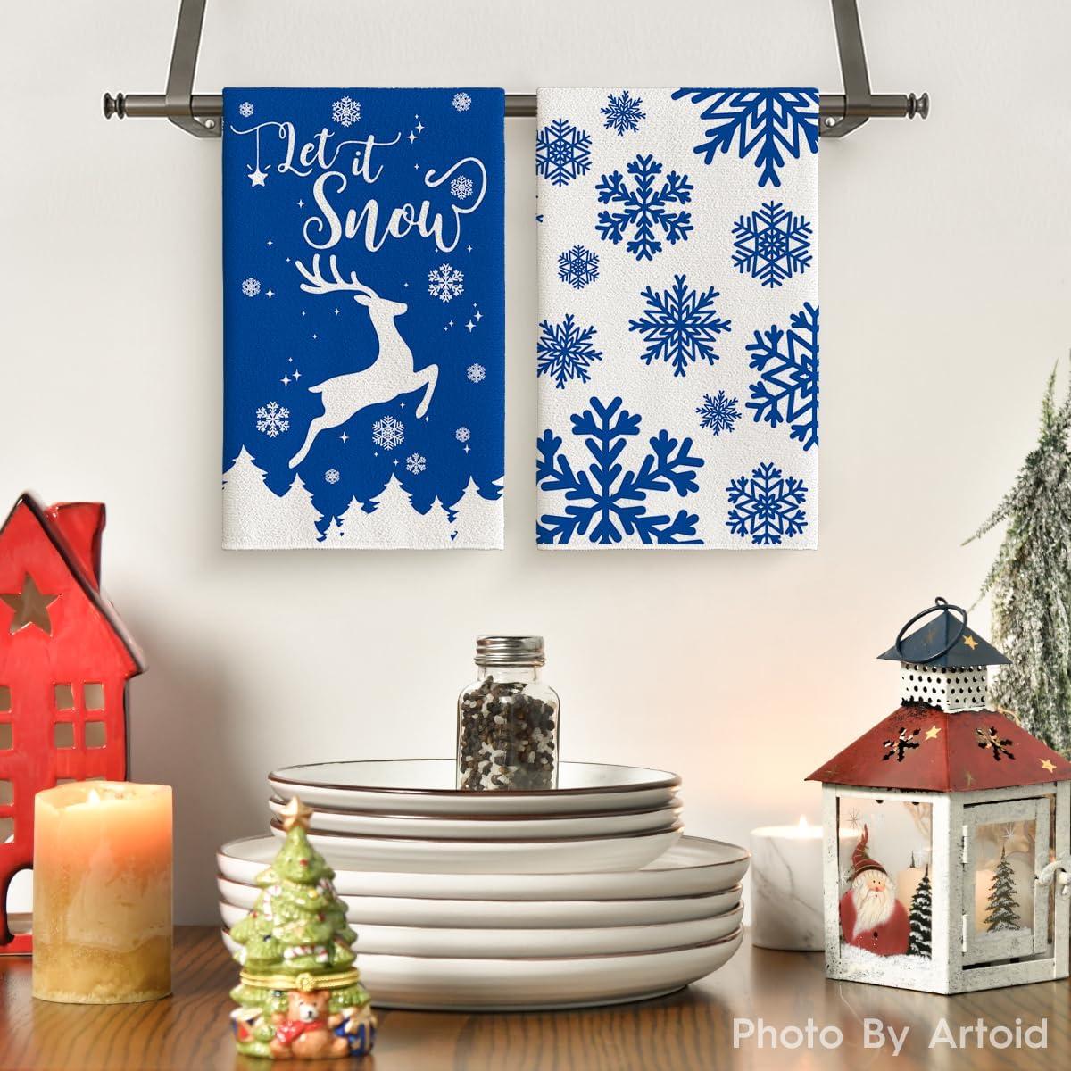 Artoid Mode Elk Snow Merry Christmas Kitchen Dish Towels Blue, 18 x 26 Inch Winter Xmas Holiday Ultra Absorbent Drying Cloth Tea Towels for Cooking Baking Set of 4(Blue)
