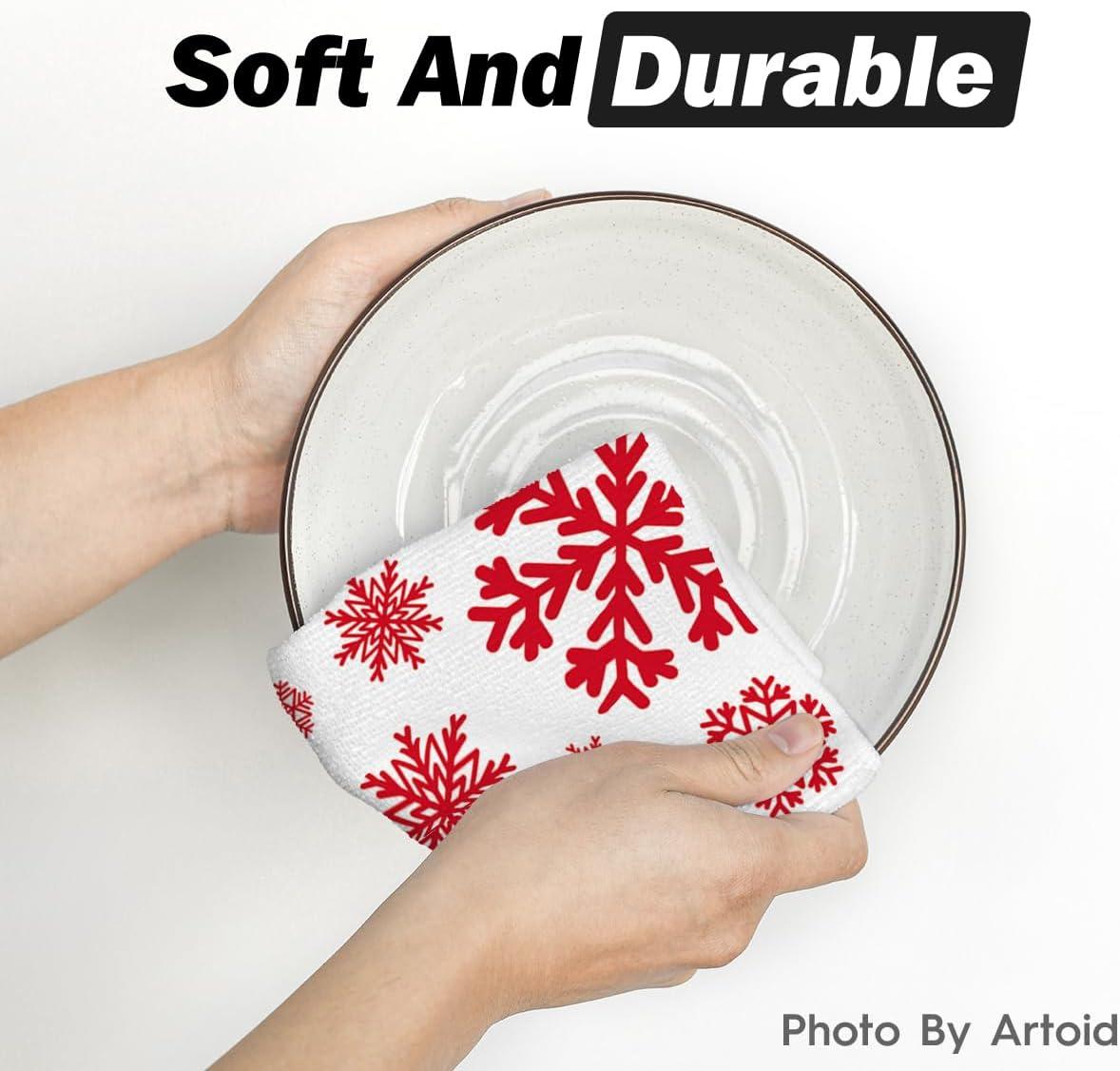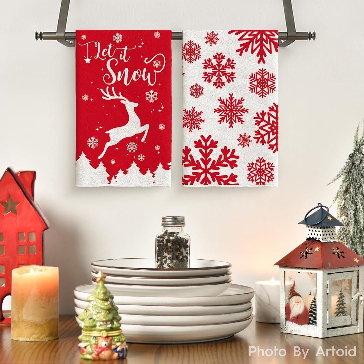 Artoid Mode Elk Snow Merry Christmas Kitchen Dish Towels Blue, 18 x 26 Inch Winter Xmas Holiday Ultra Absorbent Drying Cloth Tea Towels for Cooking Baking Set of 4(Red)