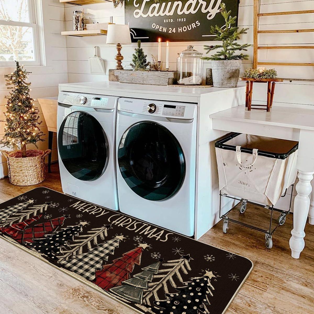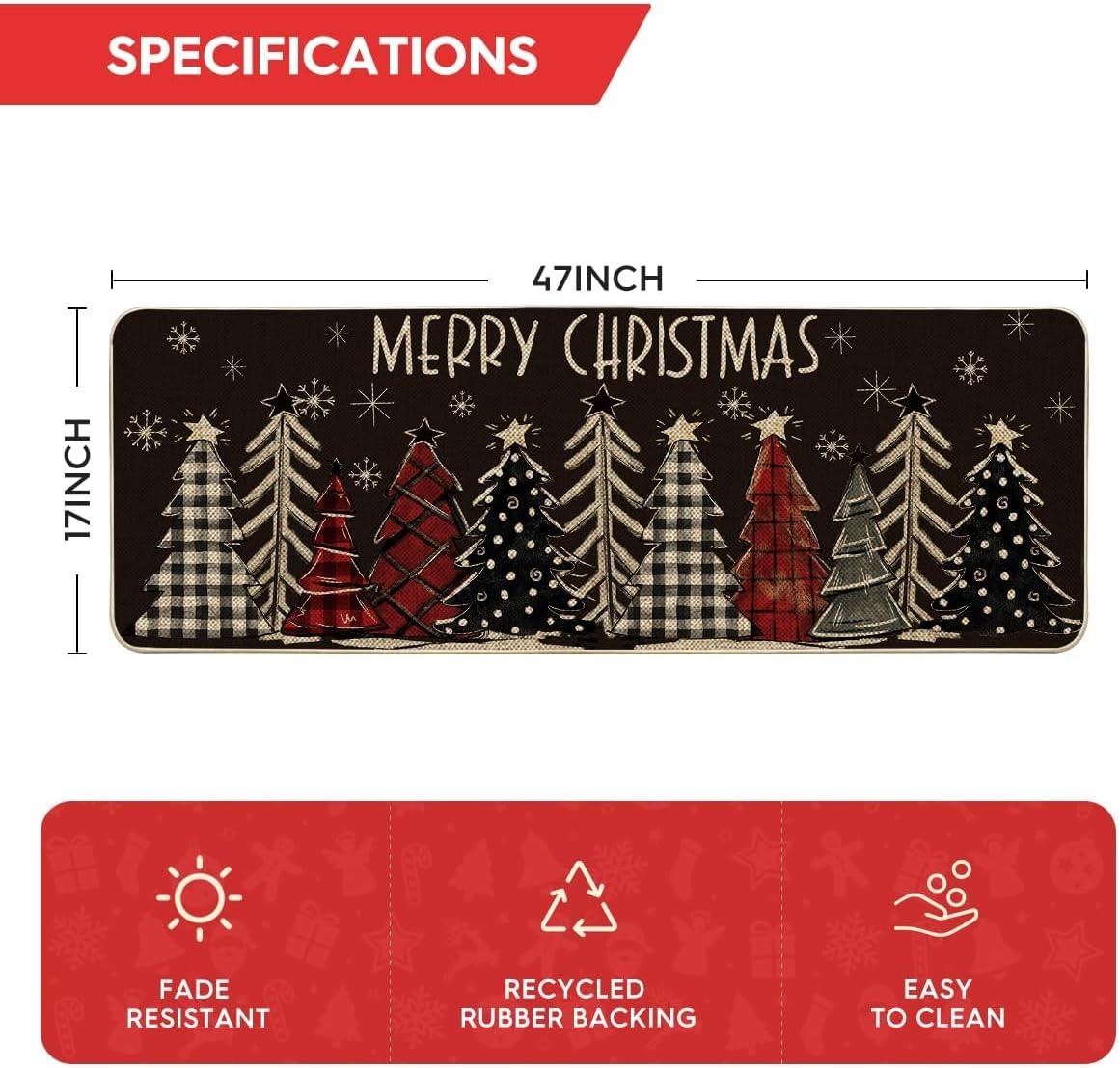 Artoid Mode Merry Christmas Trees Christmas Decorative Doormat Black, Seasonal Winter Xmas Holiday Low-Profile Floor Mat Switch Mat for Indoor Outdoor 17 x 29 Inch(Black)