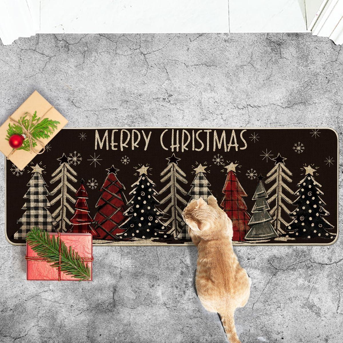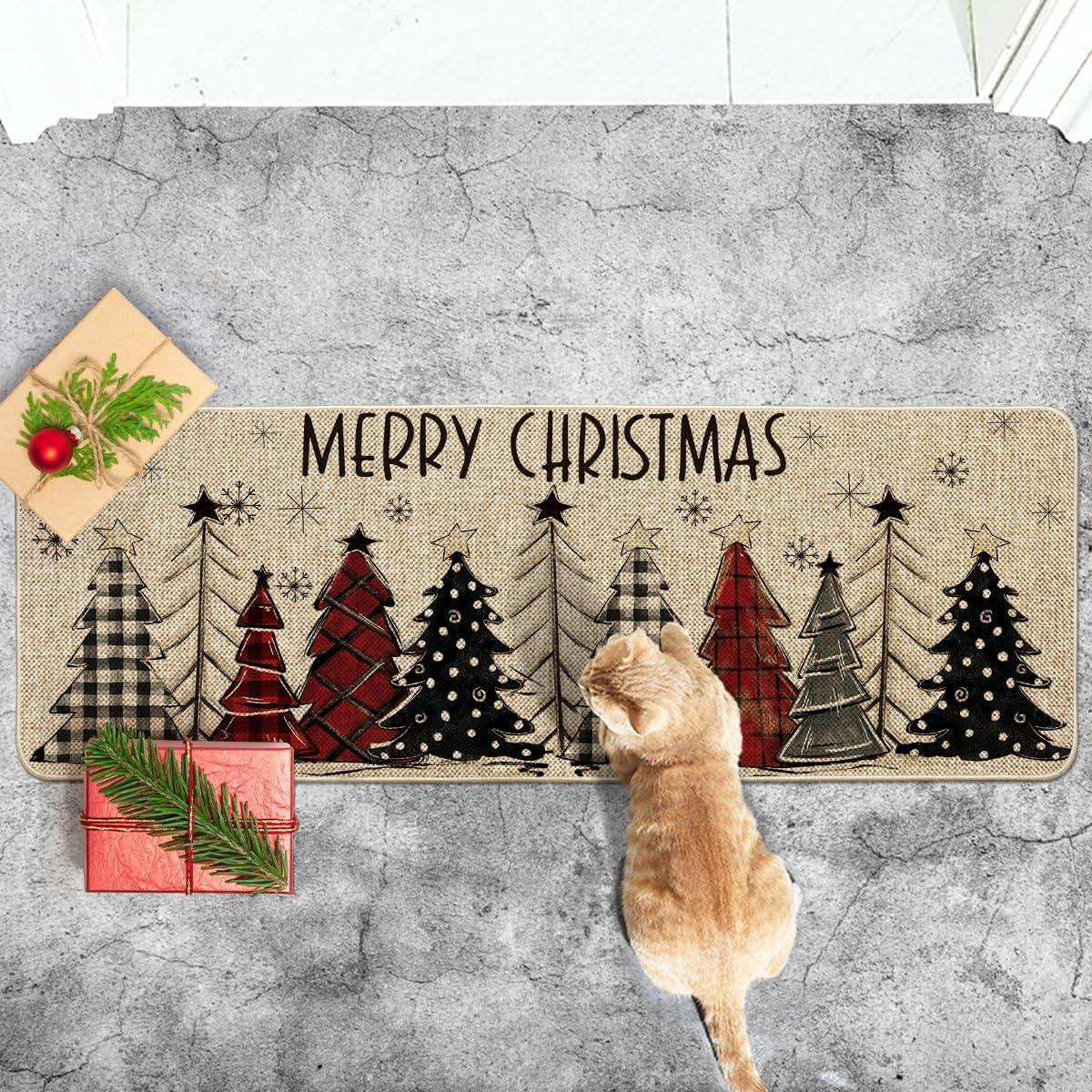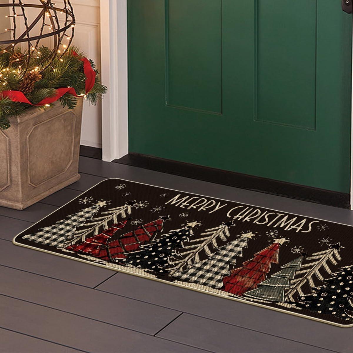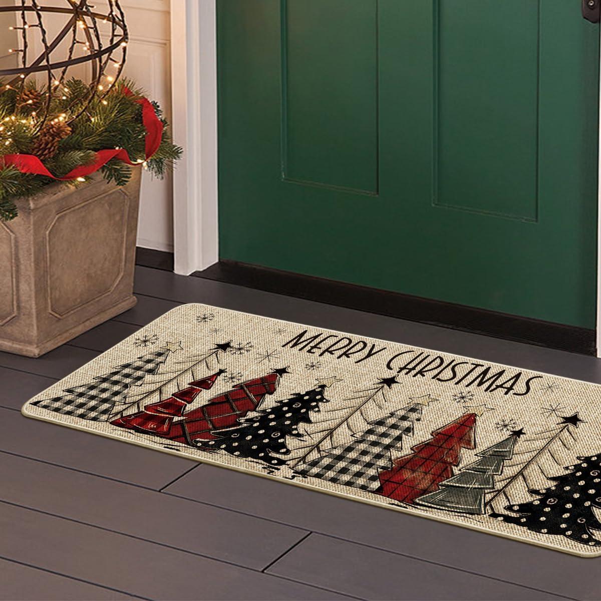 Artoid Mode Merry Christmas Trees Christmas Decorative Doormat Black, Seasonal Winter Xmas Holiday Low-Profile Floor Mat Switch Mat for Indoor Outdoor 17 x 29 Inch(Beige)