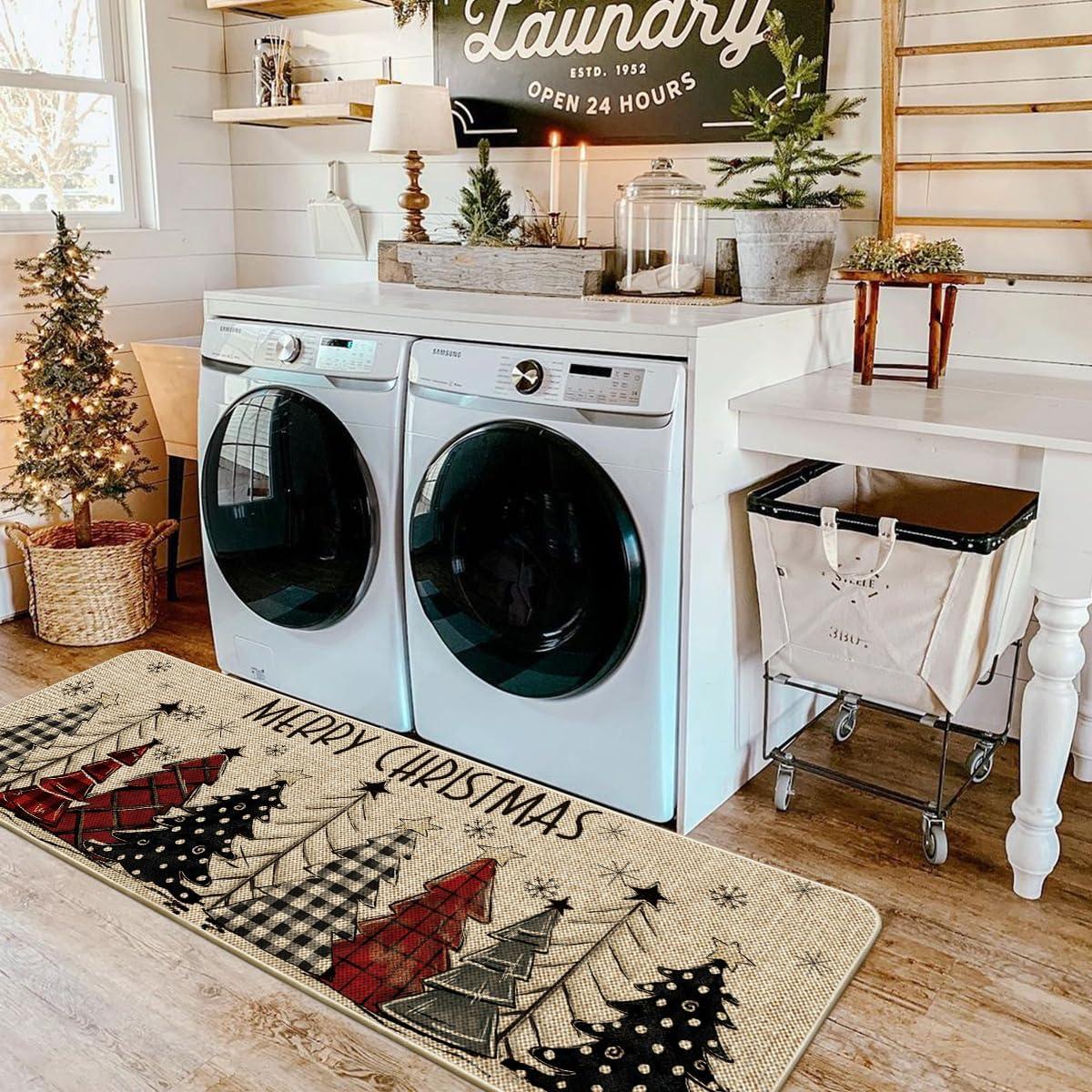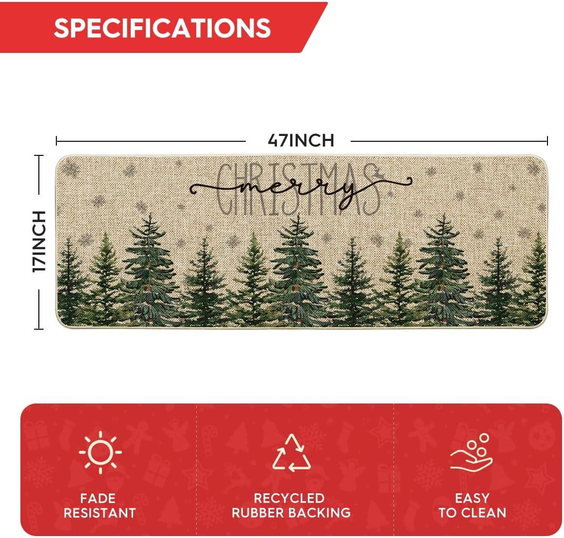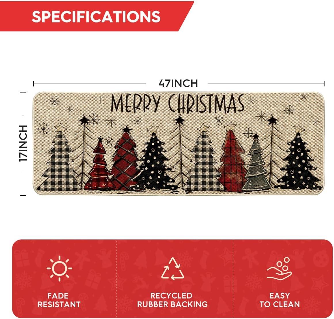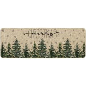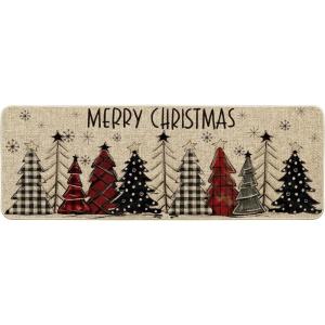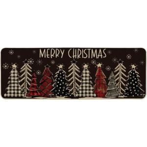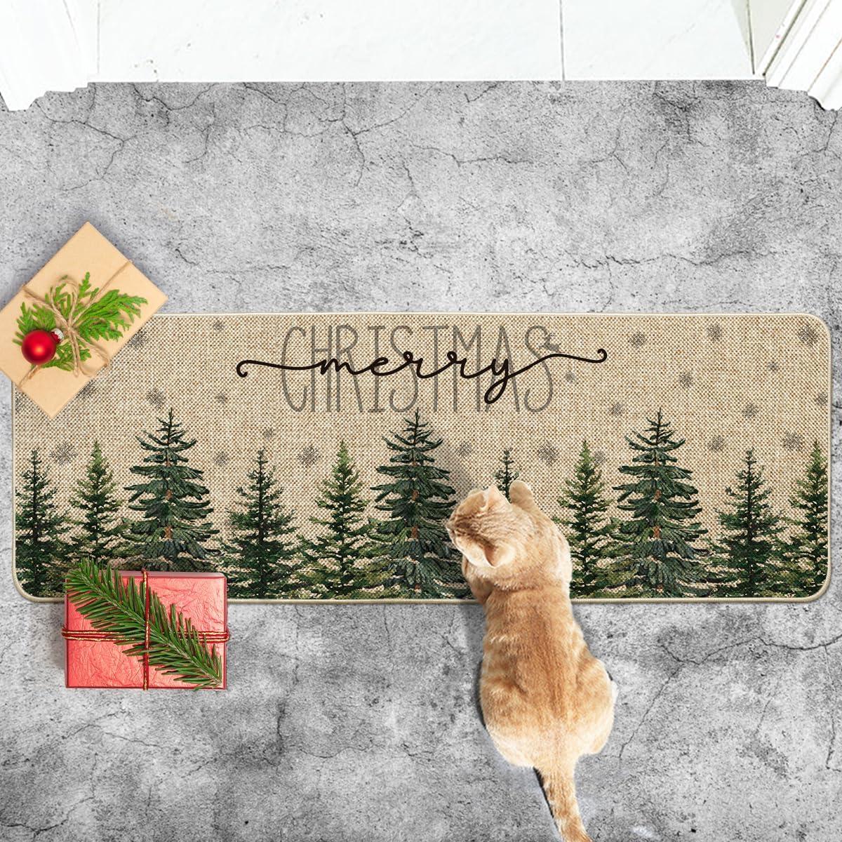 Artoid Mode Merry Christmas Trees Christmas Decorative Doormat Black, Seasonal Winter Xmas Holiday Low-Profile Floor Mat Switch Mat for Indoor Outdoor 17 x 29 Inch(Beige)