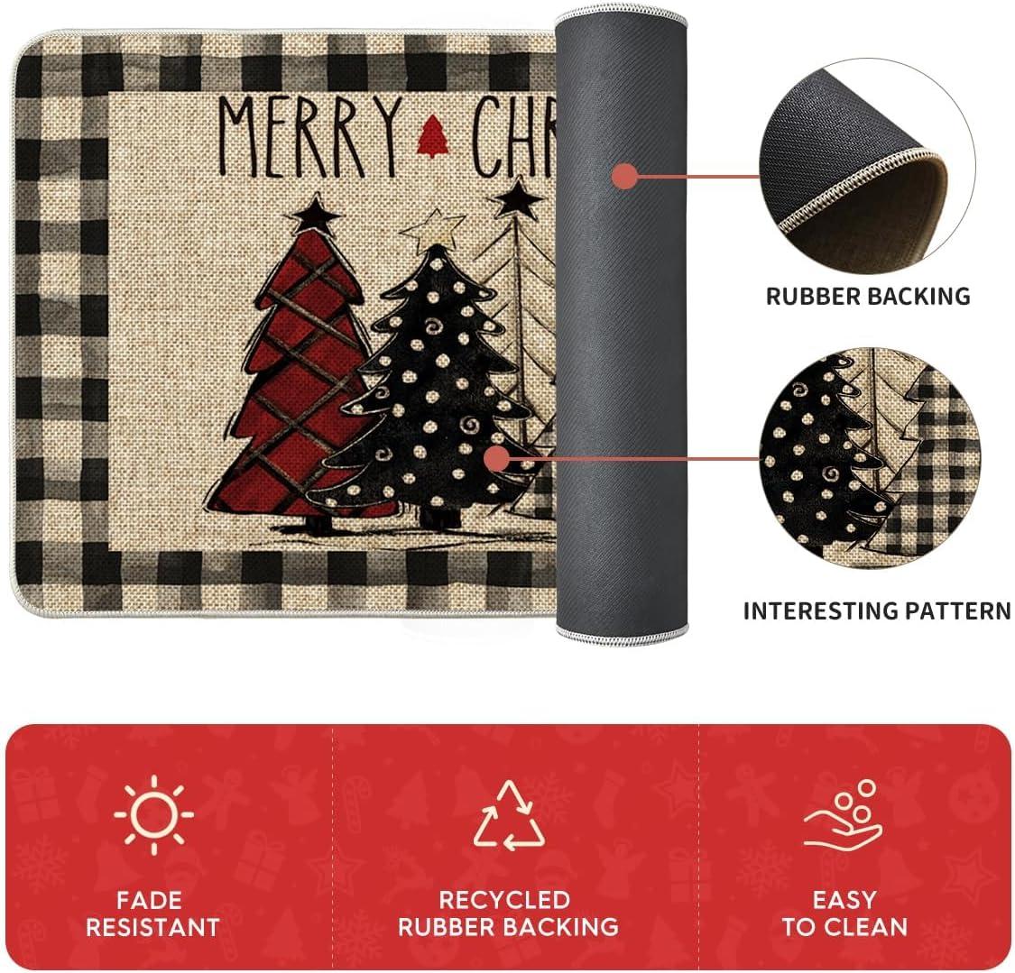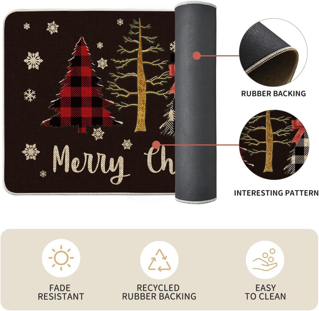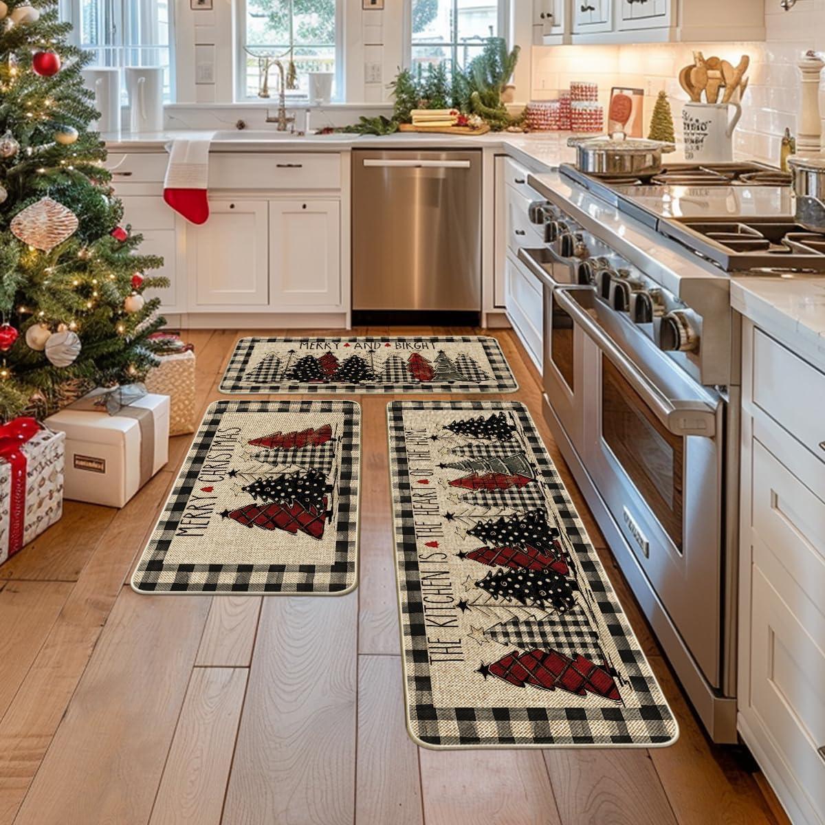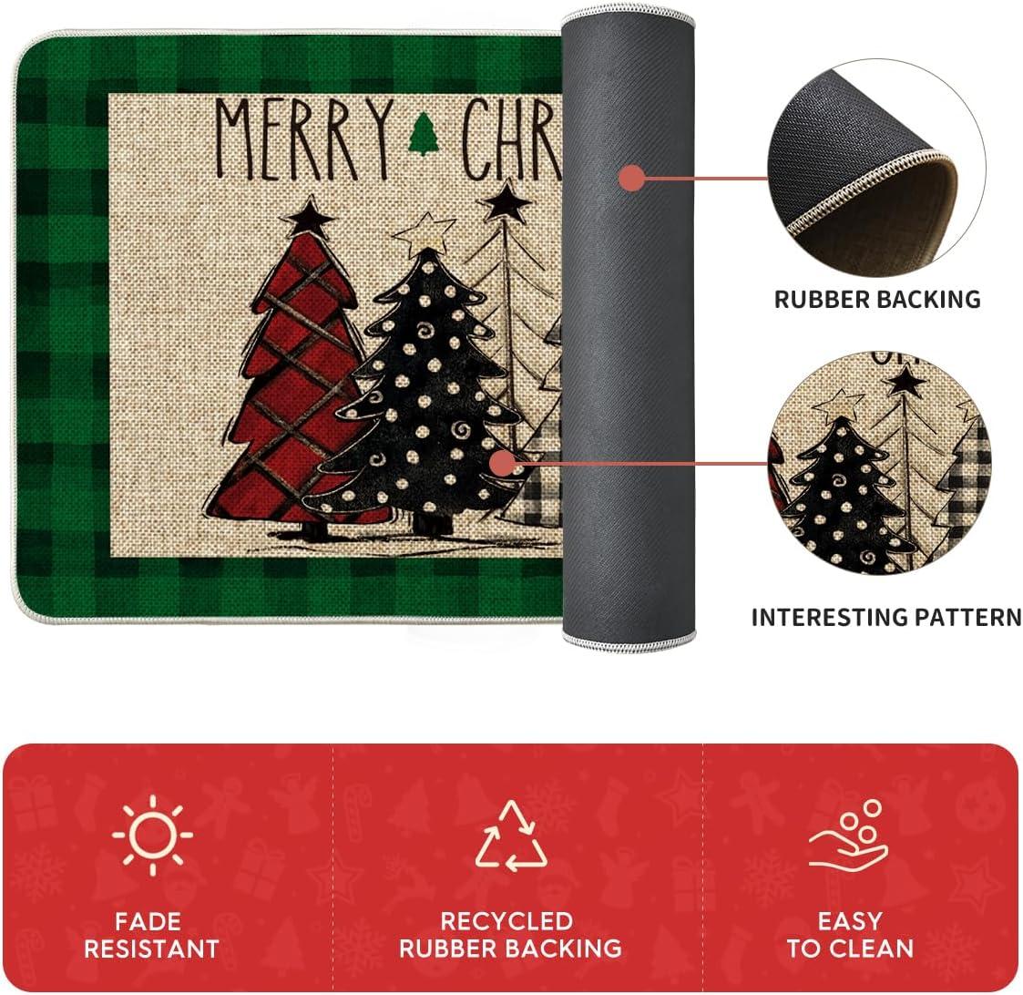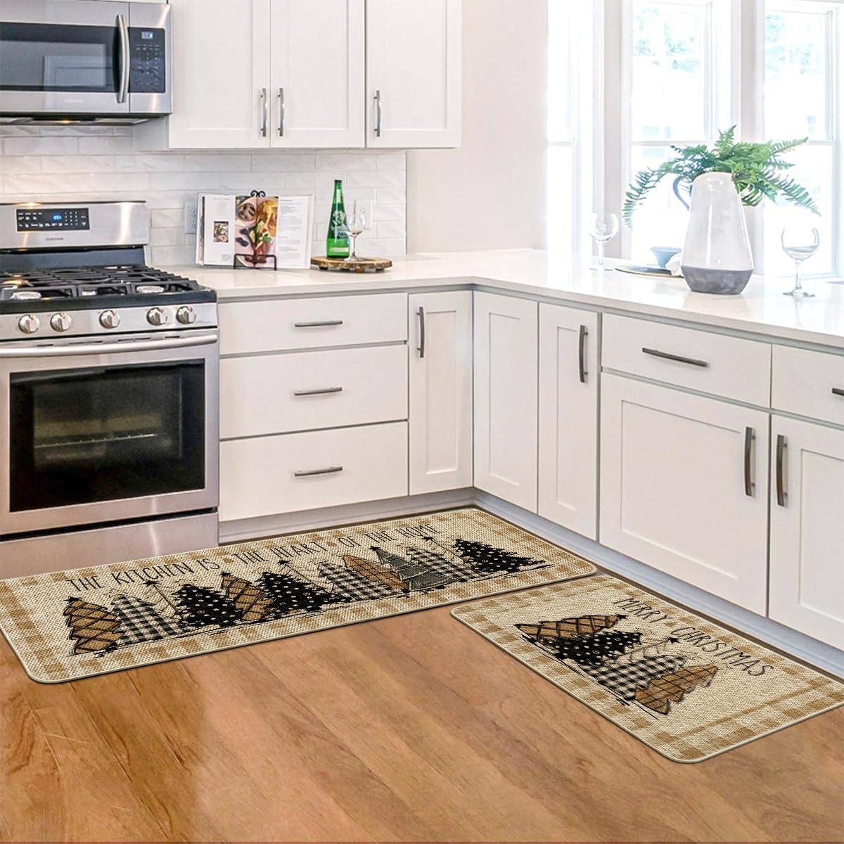 Artoid Mode Green Buffalo Plaid Xmas Tree Merry Christmas Kitchen Mats Set of 2, Winter Home Decor Low-Profile Kitchen Rugs for Floor – 17×29 and 17×47 Inch(Black/Beige)