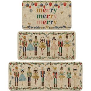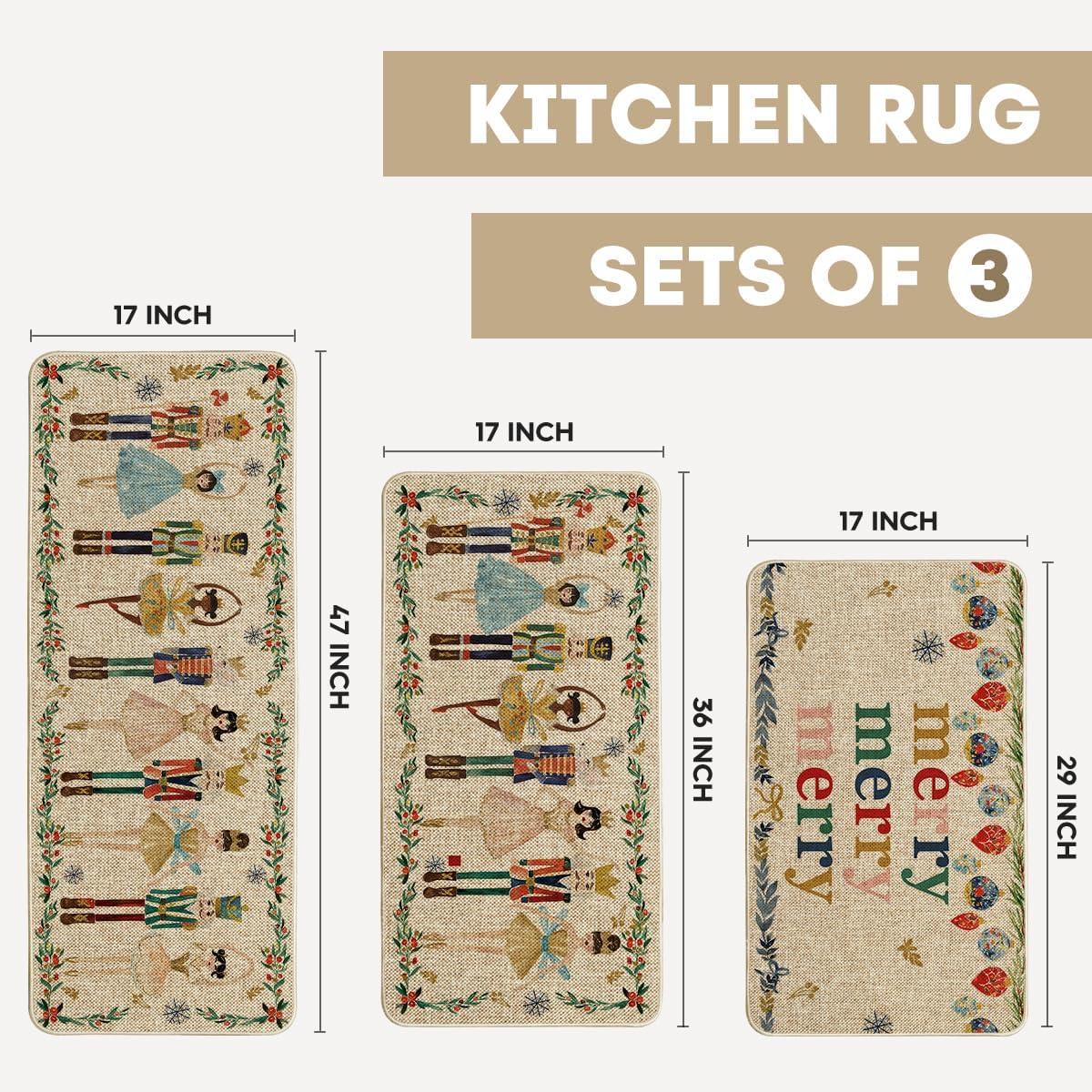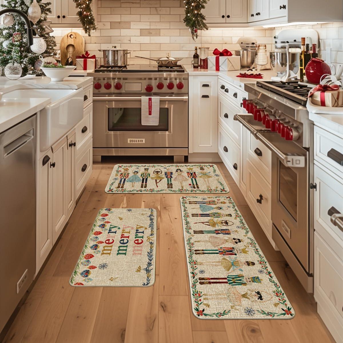 Artoid Mode Watercolor Nutcrackers Merry Christmas Decorative Kitchen Mats Set of 2, Home Party Low-Profile Kitchen Rugs – 17×29 and 17×47 Inch(Beige)