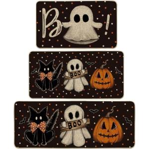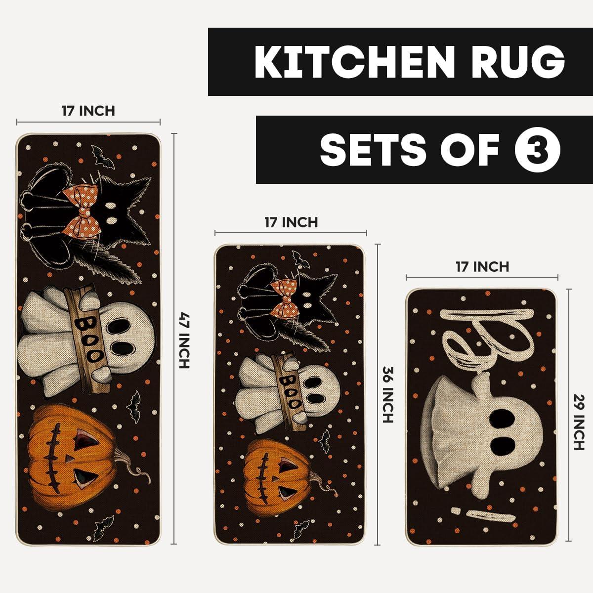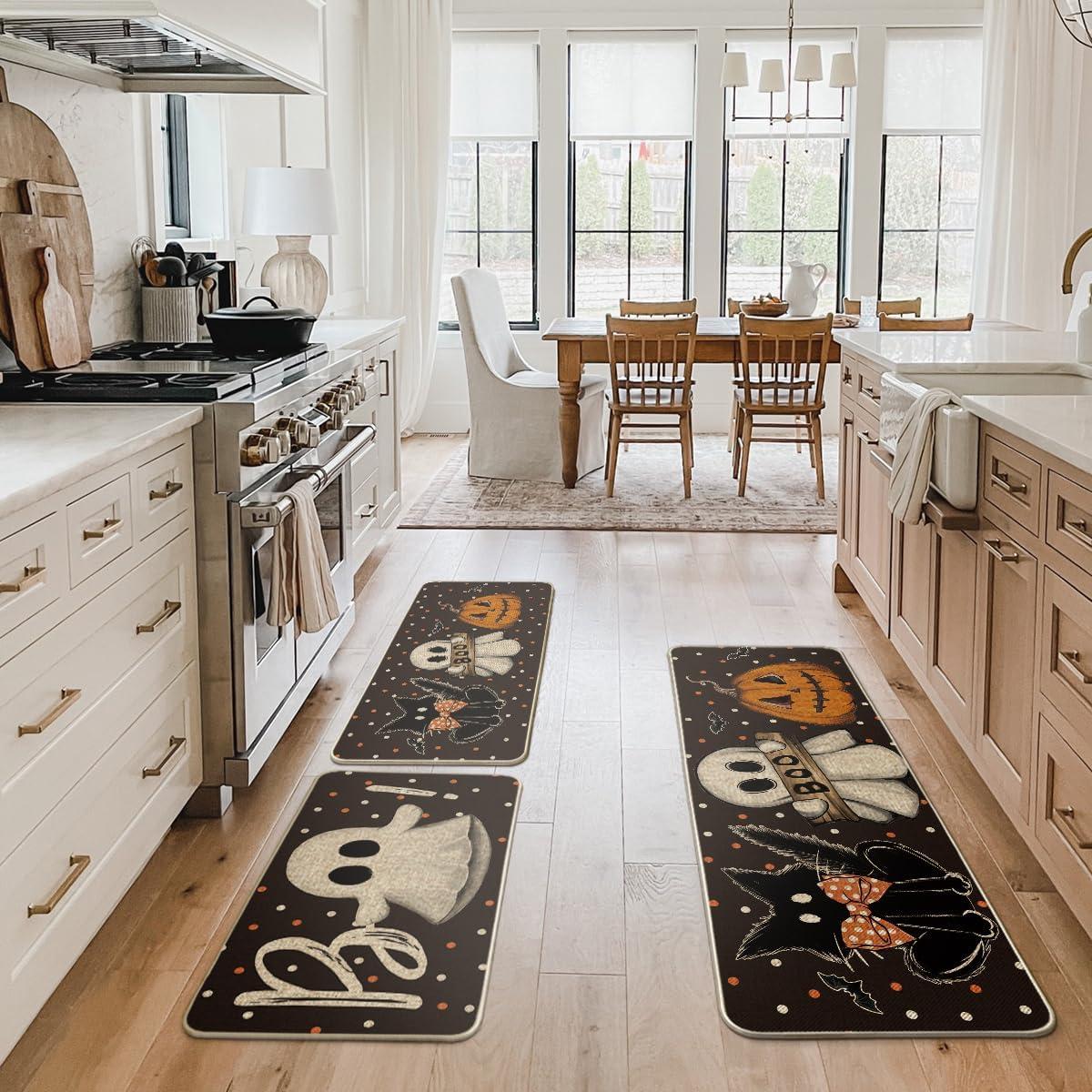 Artoid Mode Bats Black Cats Boo Pumpkin Halloween Kitchen Mats Set of 2, Home Decor Low-Profile Kitchen Rugs for Floor – 17×29 and 17×47 Inch(Black)