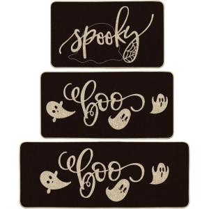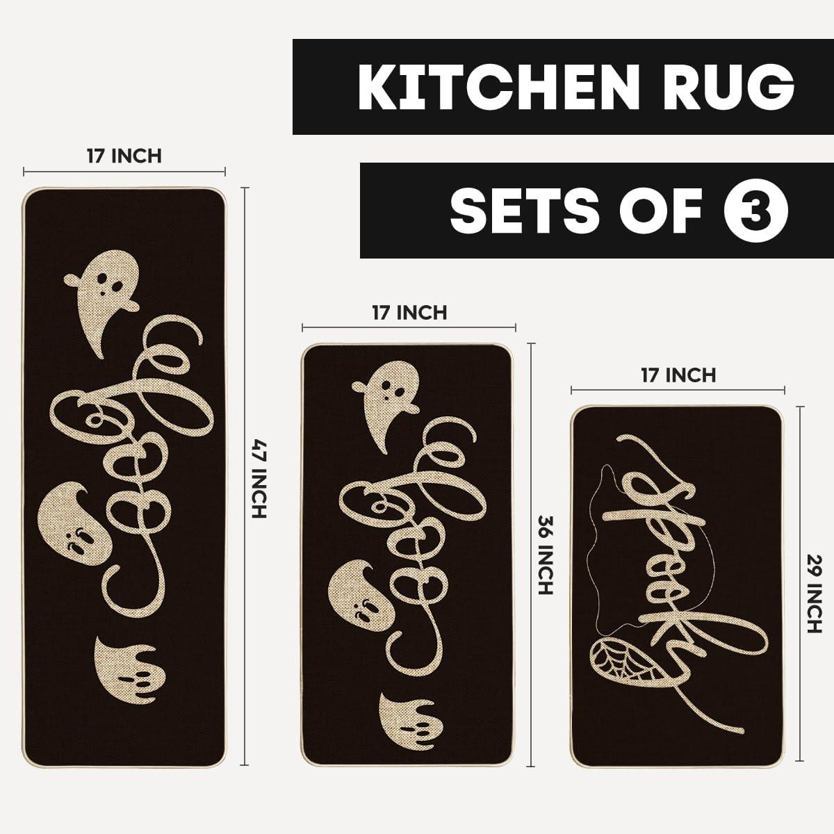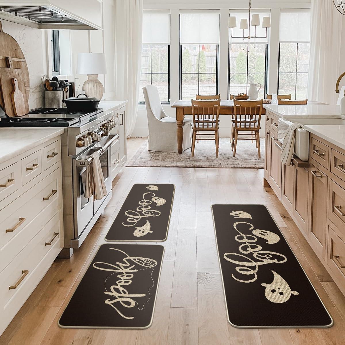 Artoid Mode Spooky Spider Web Ghosts Boo Halloween Kitchen Mats Set of 2, Home Decor Low-Profile Kitchen Rugs for Floor – 17×29 and 17×47 Inch(Black)