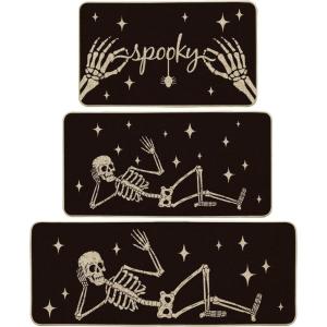 Artoid Mode Spooky Skeleton Spider Bone Orange Halloween Kitchen Mats Set of 2, Black Home Decor Low-Profile Kitchen Rugs for Floor – 17×29 and 17×47 Inch(Black)