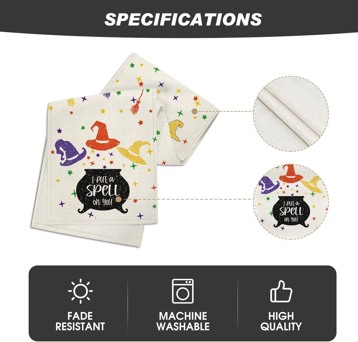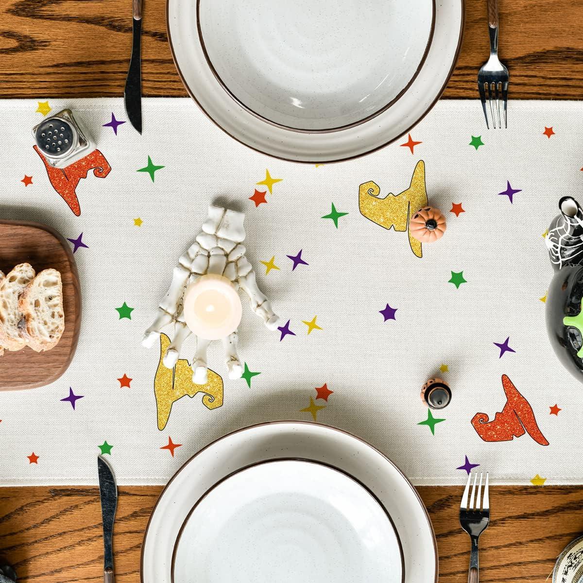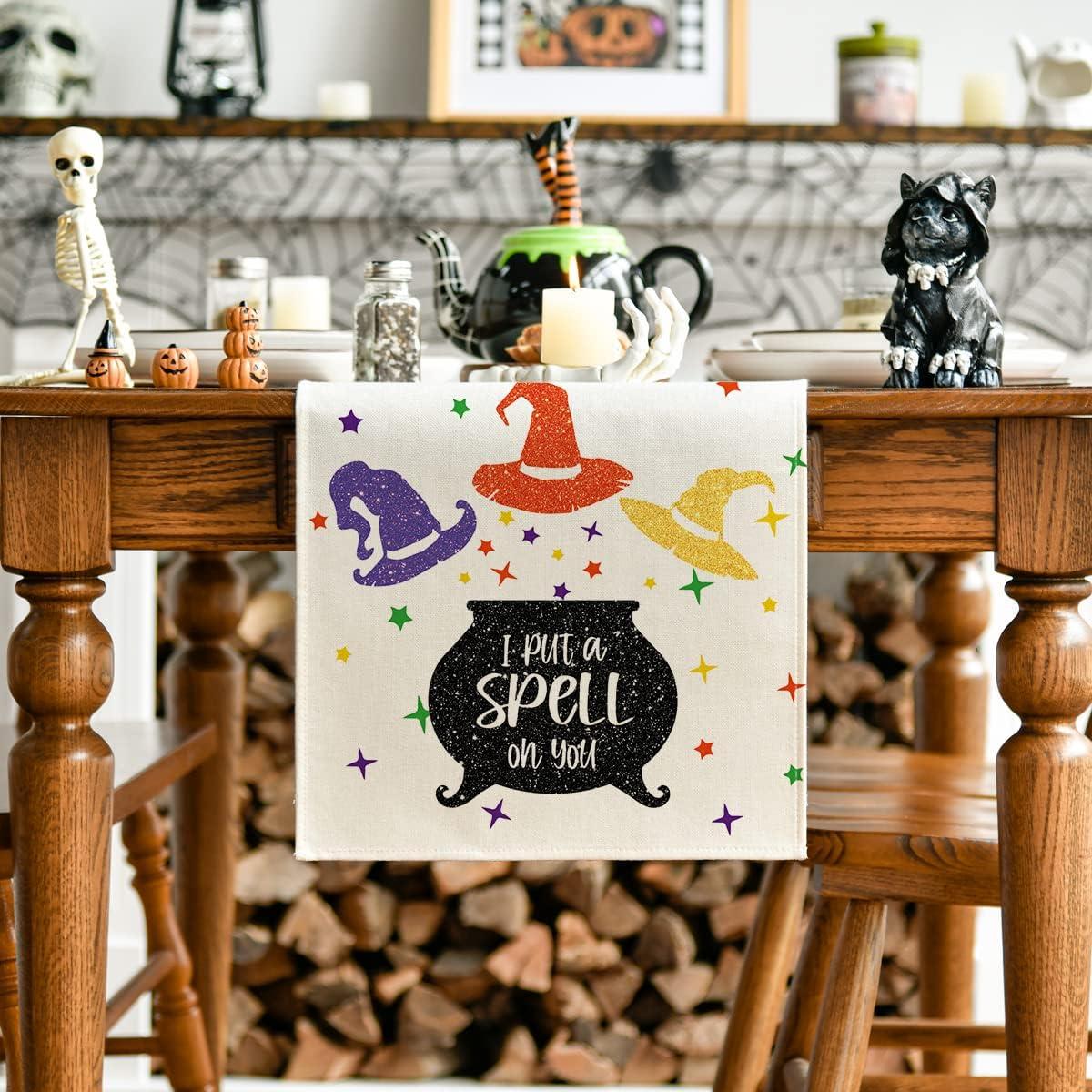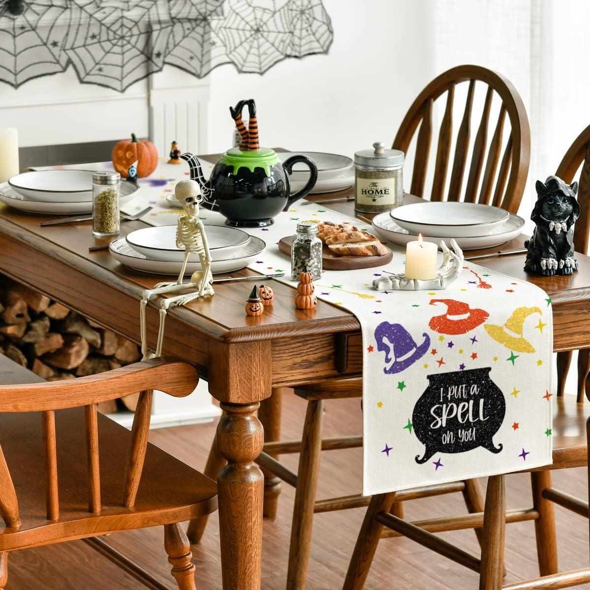 Artoid Mode Wizzard Hat Witch Vibes Brew Broom Halloween Table Runner, I Put a Spell On You Kitchen Dining Table Decoration for Home Party Decor 13×72 Inch