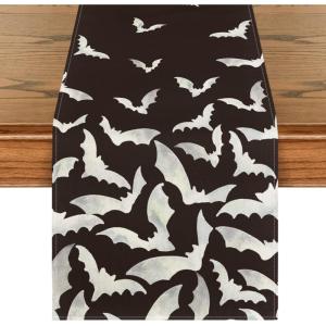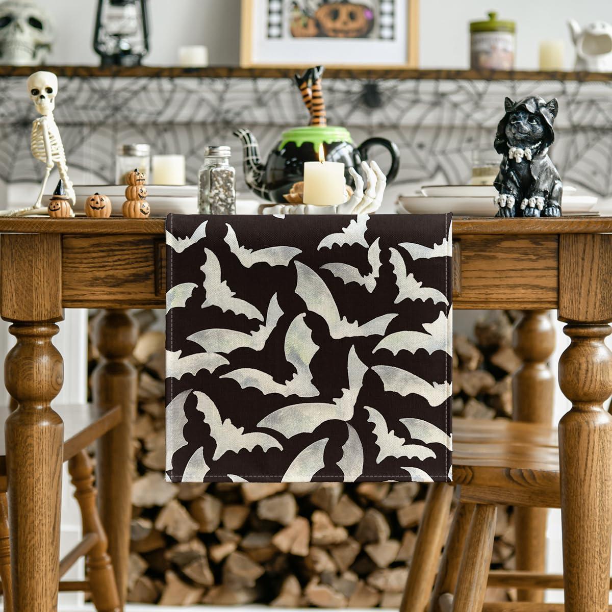 Artoid Mode Silhouette Black Bats Halloween Table Runner, Fall Kitchen Dining Table Decoration for Home Party Decor 13×90 Inch(Black/White)