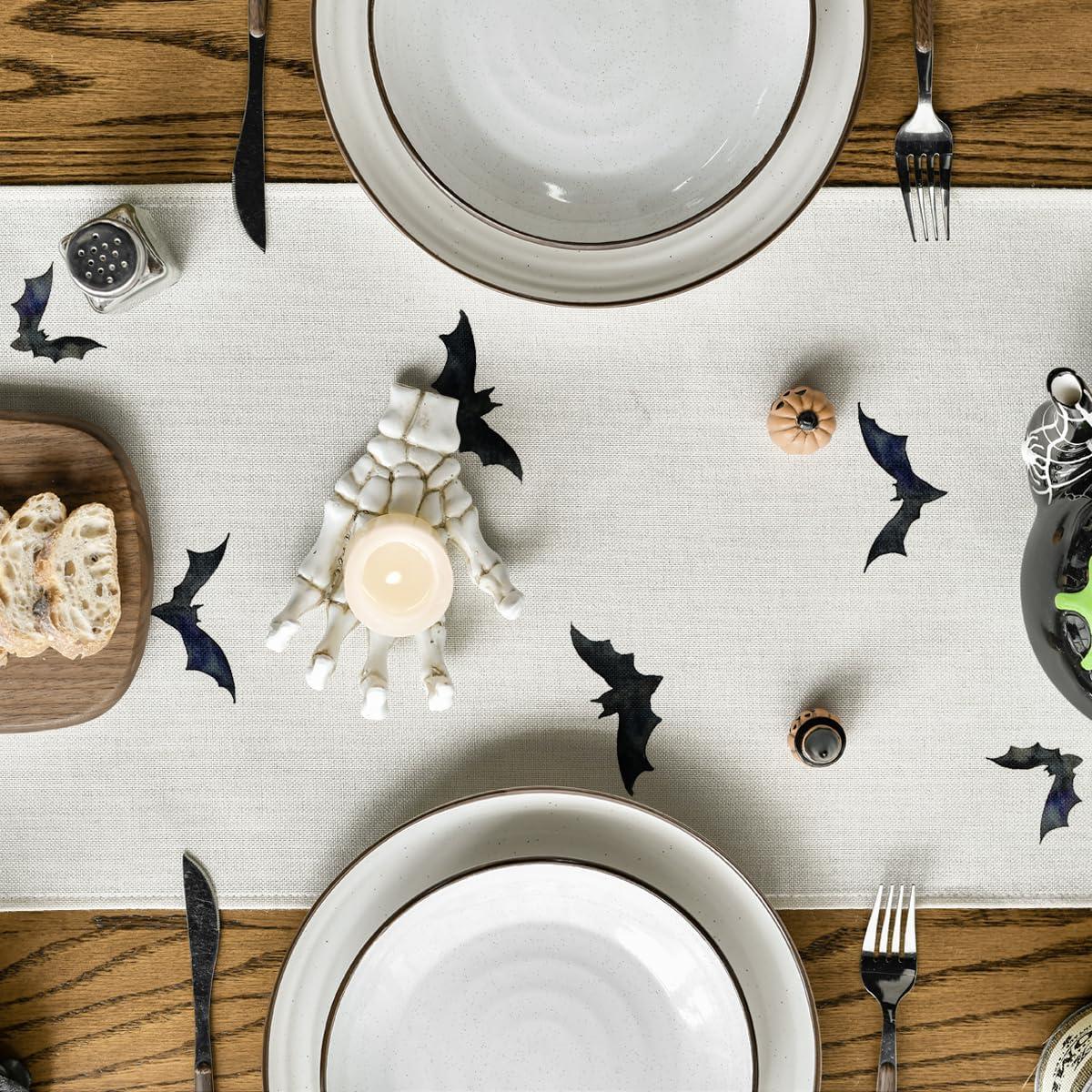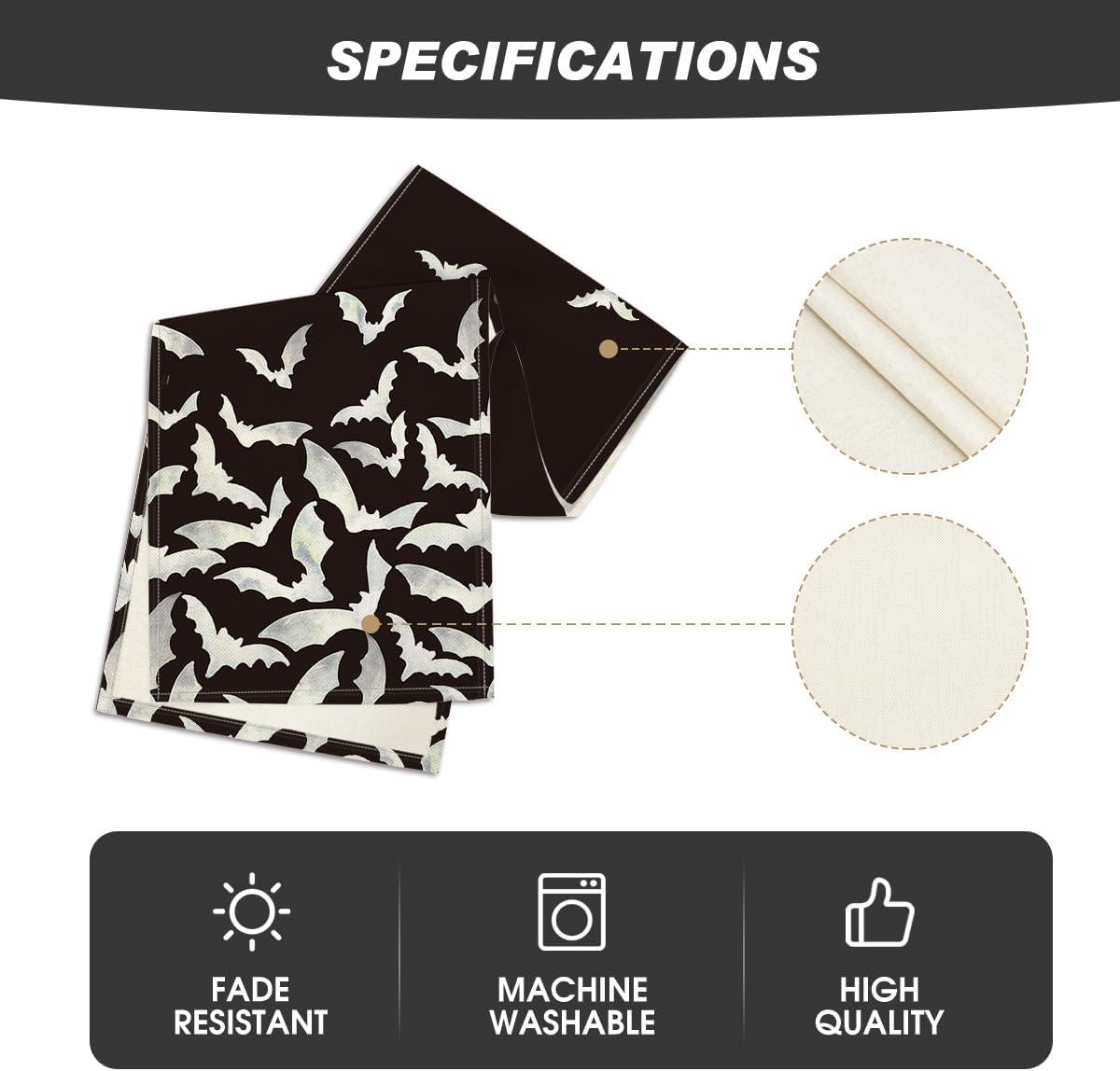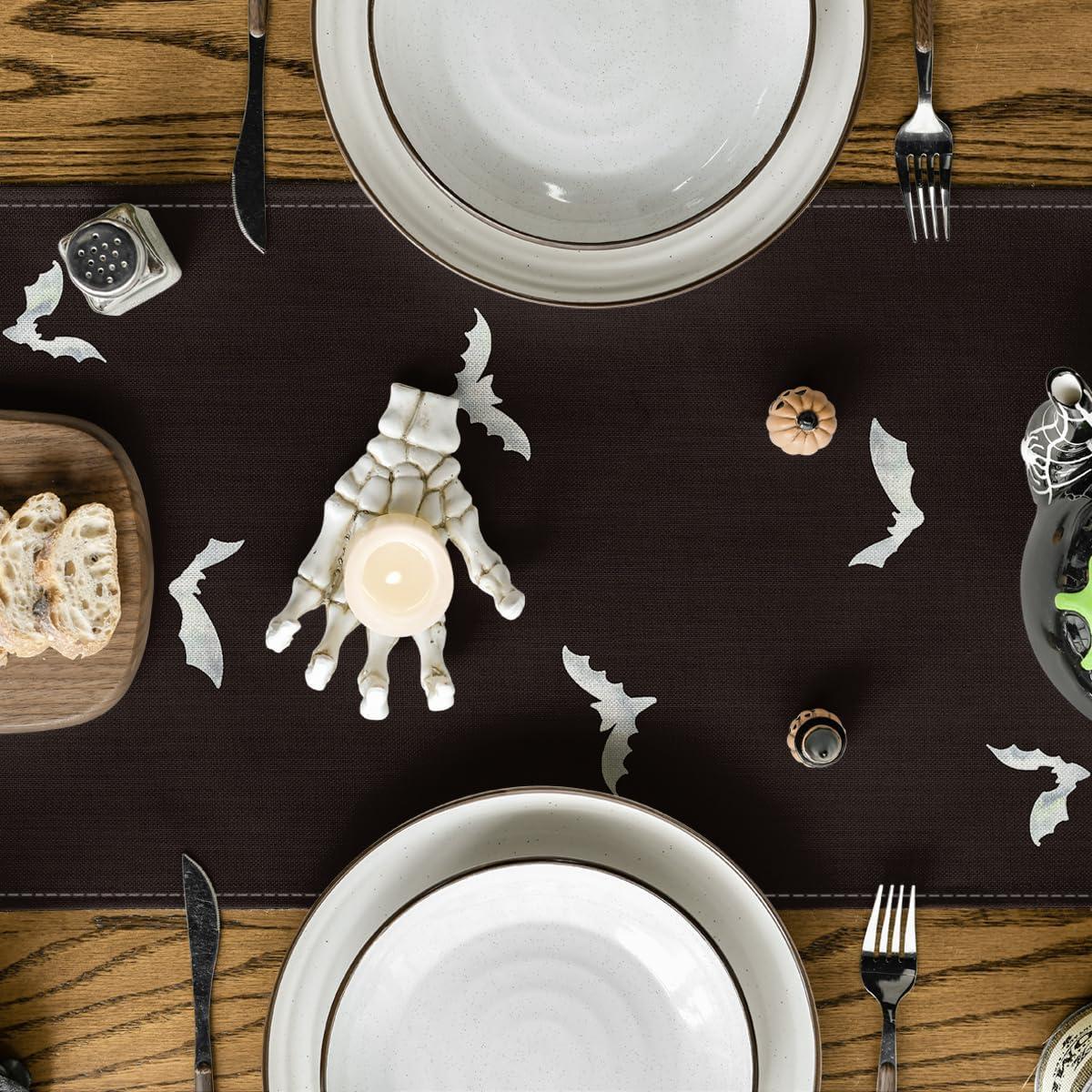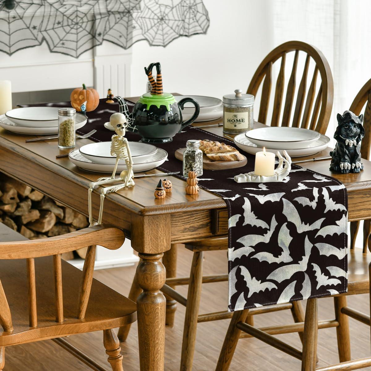 Artoid Mode Silhouette Black Bats Halloween Table Runner, Fall Kitchen Dining Table Decoration for Home Party Decor 13×108 Inch(Black/White)