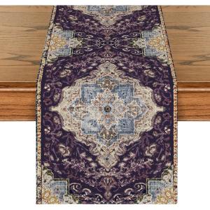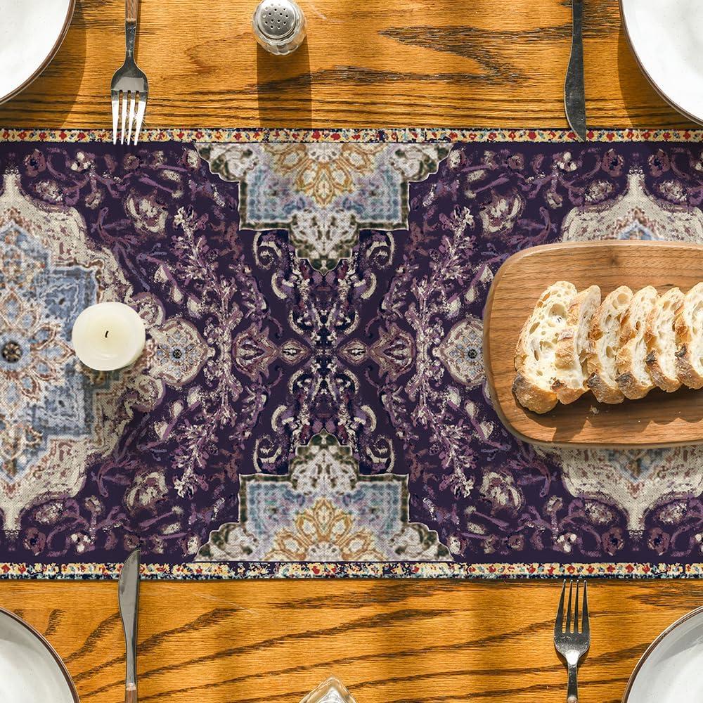 Artoid Mode Boho Cheesecloth Gauze Dusty Pink Wedding Table Runner, 120 Inch Seasonal Fabric Kitchen Dining Holiday Table Decor for Home Party Indoor(Purple)