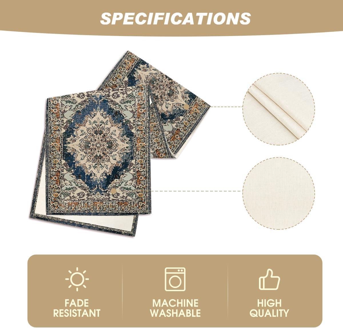 Artoid Mode Beige Floral Paisley Table Runner, Seasonal Spring Kitchen Dining Table Decoration for Home Party Decor 13×72 Inch(Blue)
