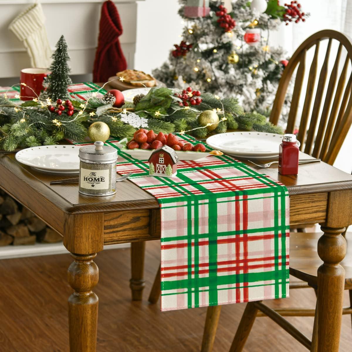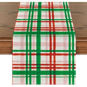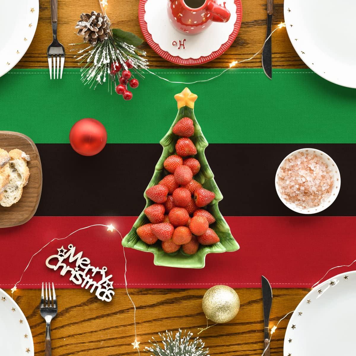 Artoid Mode Red Stripes 2025 New Year Christmas Table Runner, Seasonal Winter Holiday Kitchen Dining Table Decoration for Home Party Decor 13×72 Inch(Green/Black/Red)