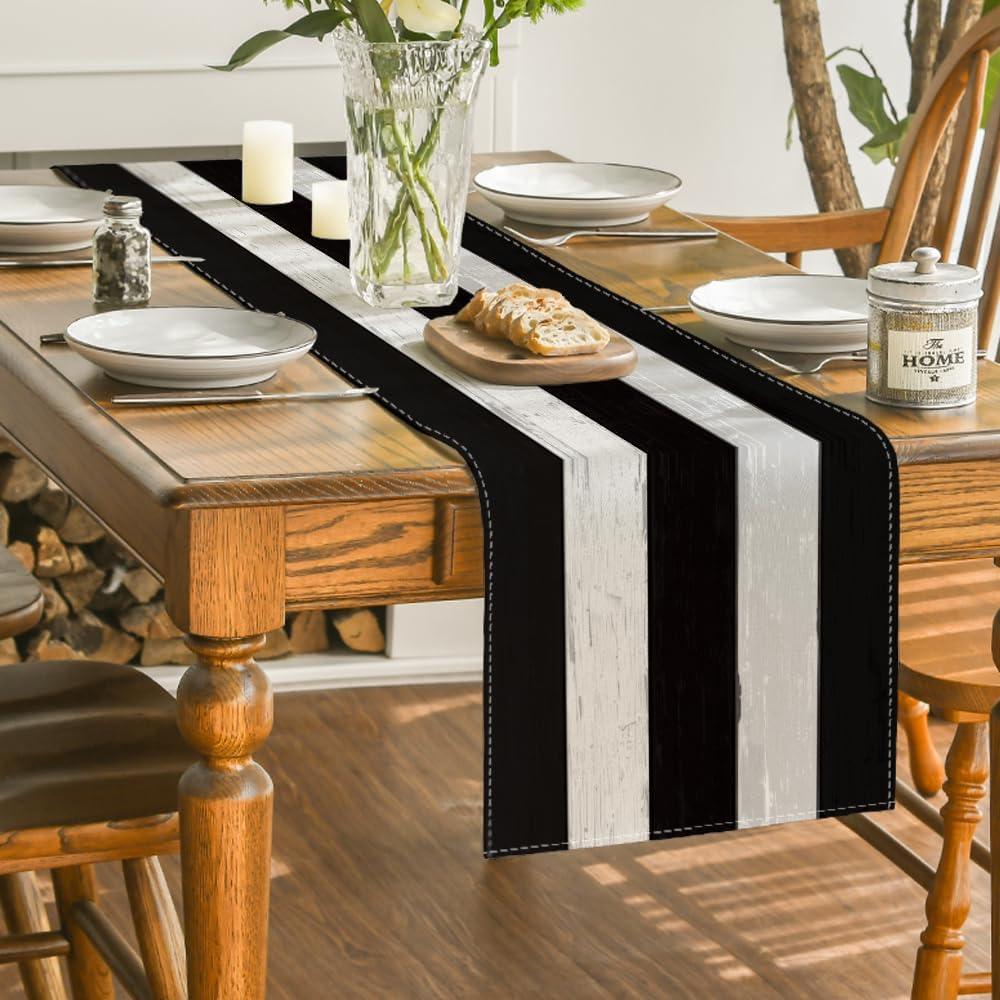 Artoid Mode Boho Cheesecloth Gauze Dusty Pink Wedding Table Runner, 120 Inch Seasonal Fabric Kitchen Dining Holiday Table Decor for Home Party Indoor(Black)