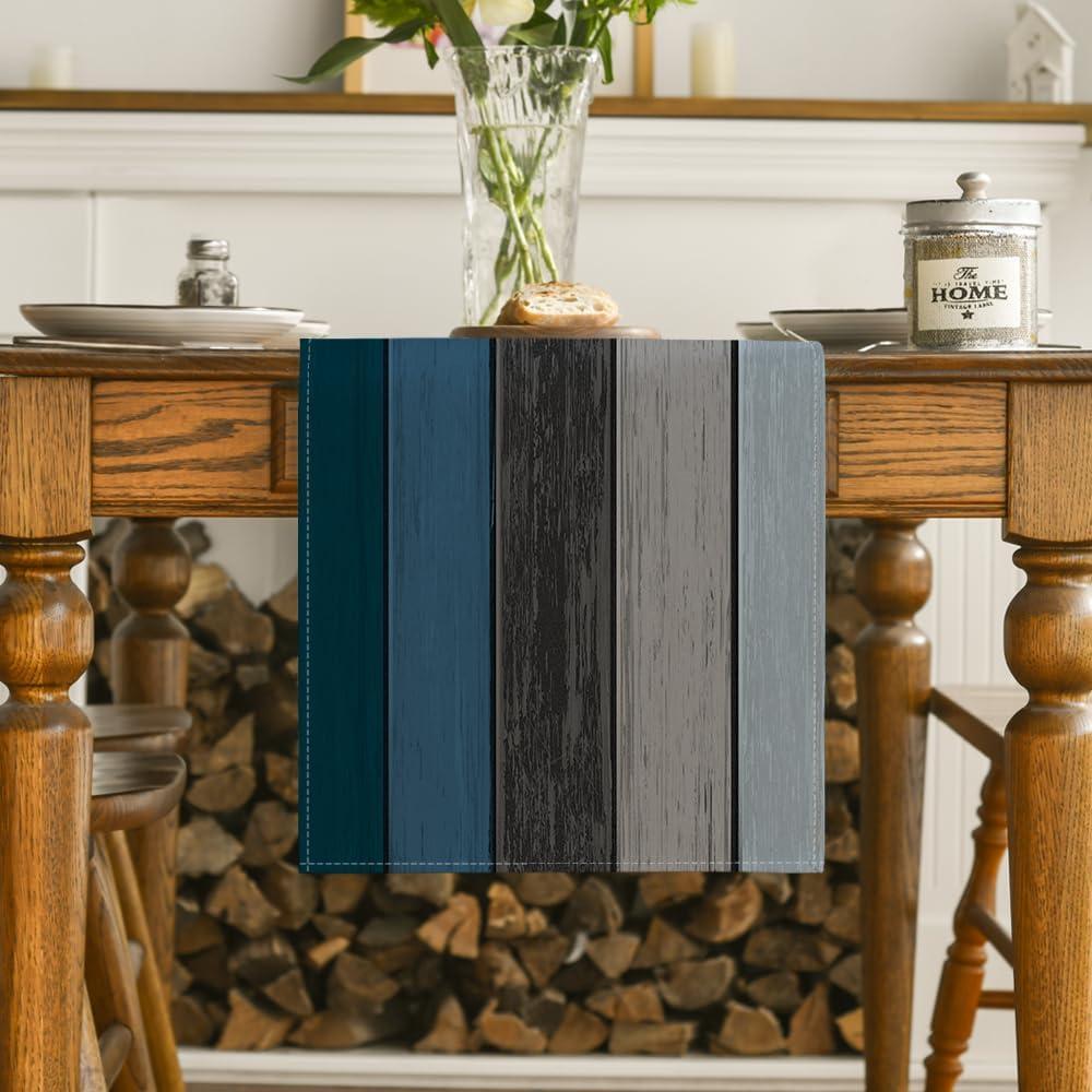Artoid Mode Blue Yellow Touch Down American Football Court Table Runner, Rugby Boy Fall Birthday Party Kitchen Dining Table Decoration for Home Decor 13×72 Inch(Blue/Grey)