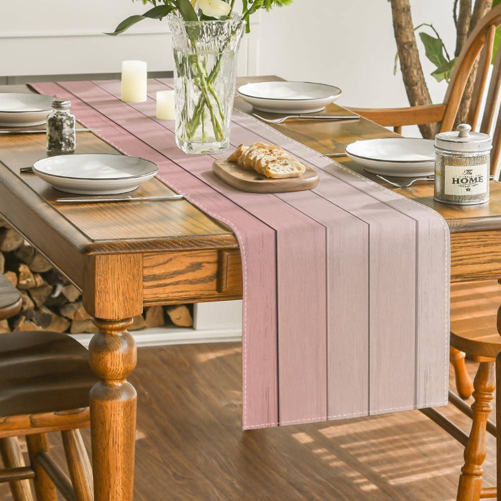Artoid Mode Boho Cheesecloth Gauze Dusty Pink Wedding Table Runner, 120 Inch Seasonal Fabric Kitchen Dining Holiday Table Decor for Home Party Indoor(Grey)