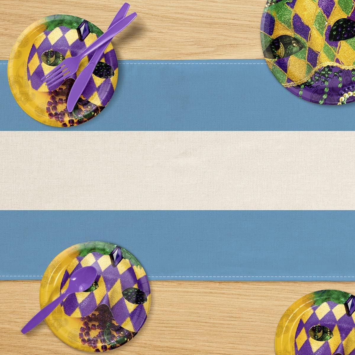 Artoid Mode Purple Green Orange Irises Masks Mardi Gras Table Runner, Seasonal Carnival Kitchen Dining Table Decoration for Home Party Decor 13×72 Inch(Purple)