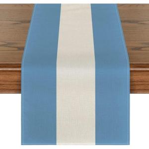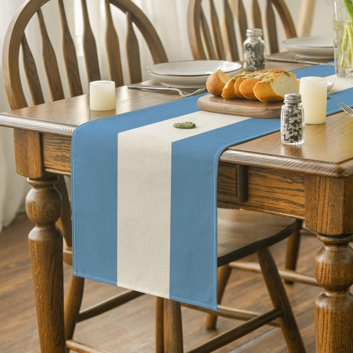 Artoid Mode Red Stripes 2025 New Year Christmas Table Runner, Seasonal Winter Holiday Kitchen Dining Table Decoration for Home Party Decor 13×72 Inch(Blue/White)