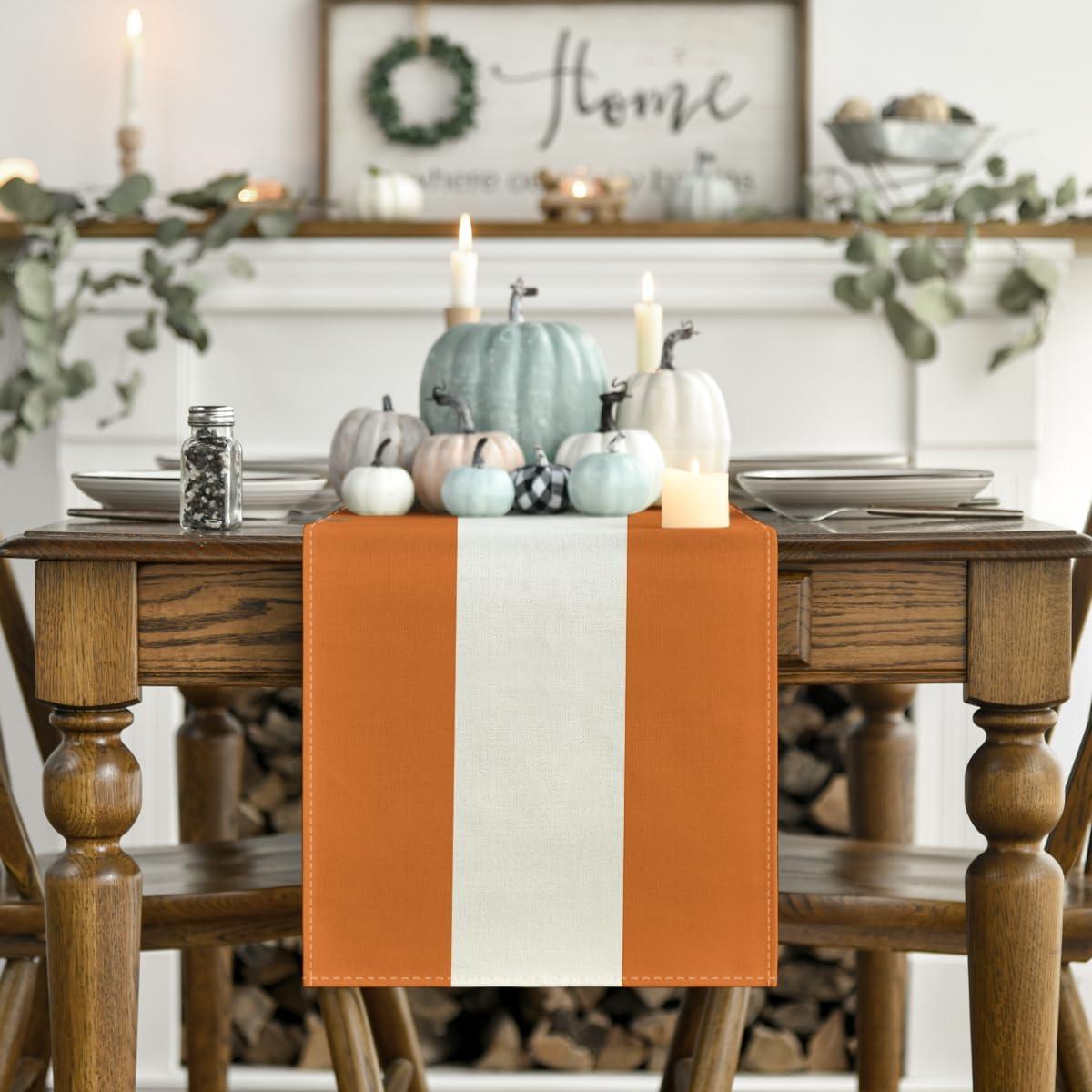 Artoid Mode Thankful Fall Pumpkin Leaves Floral Vases Table Runner, Autumn Thanksgiving Kitchen Dining Table Decoration for Home Party Decor 13×72 Inch(Orange/Beige)