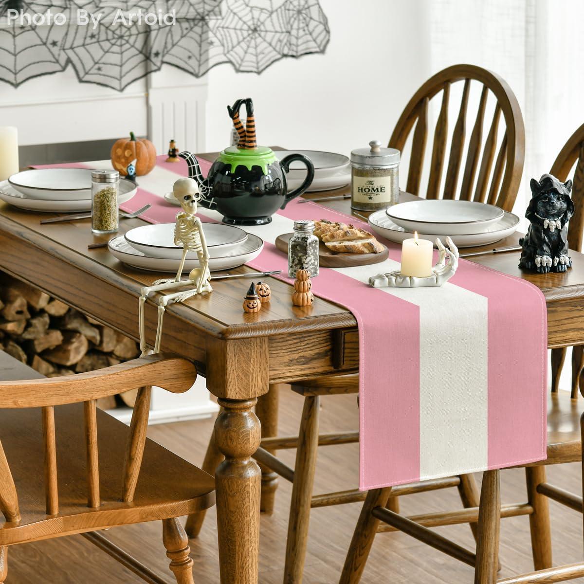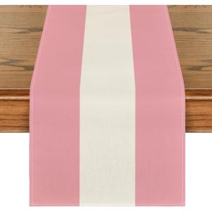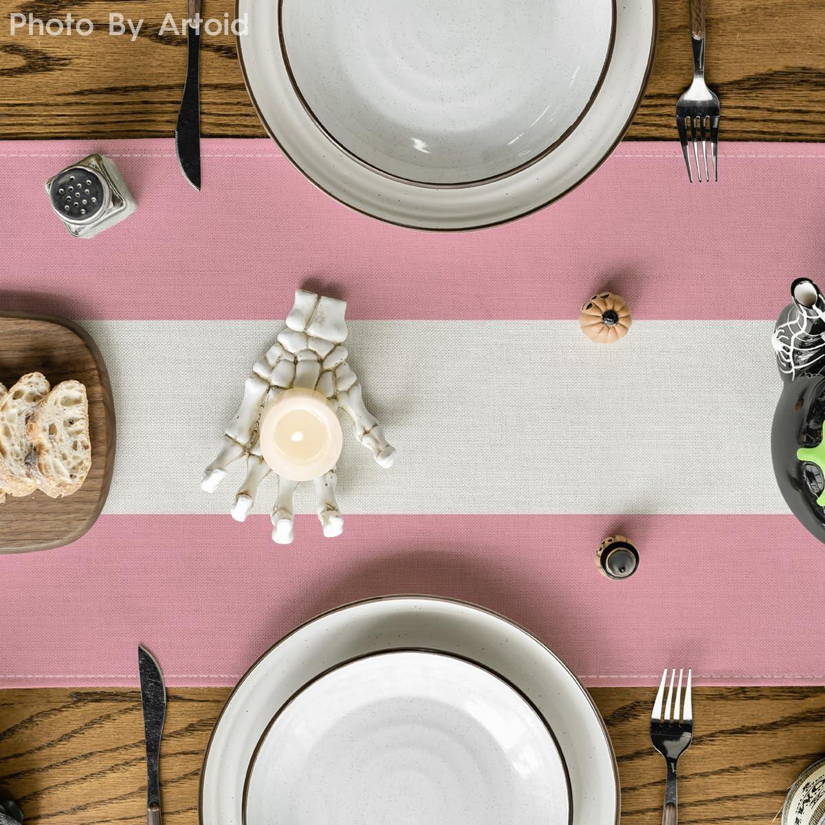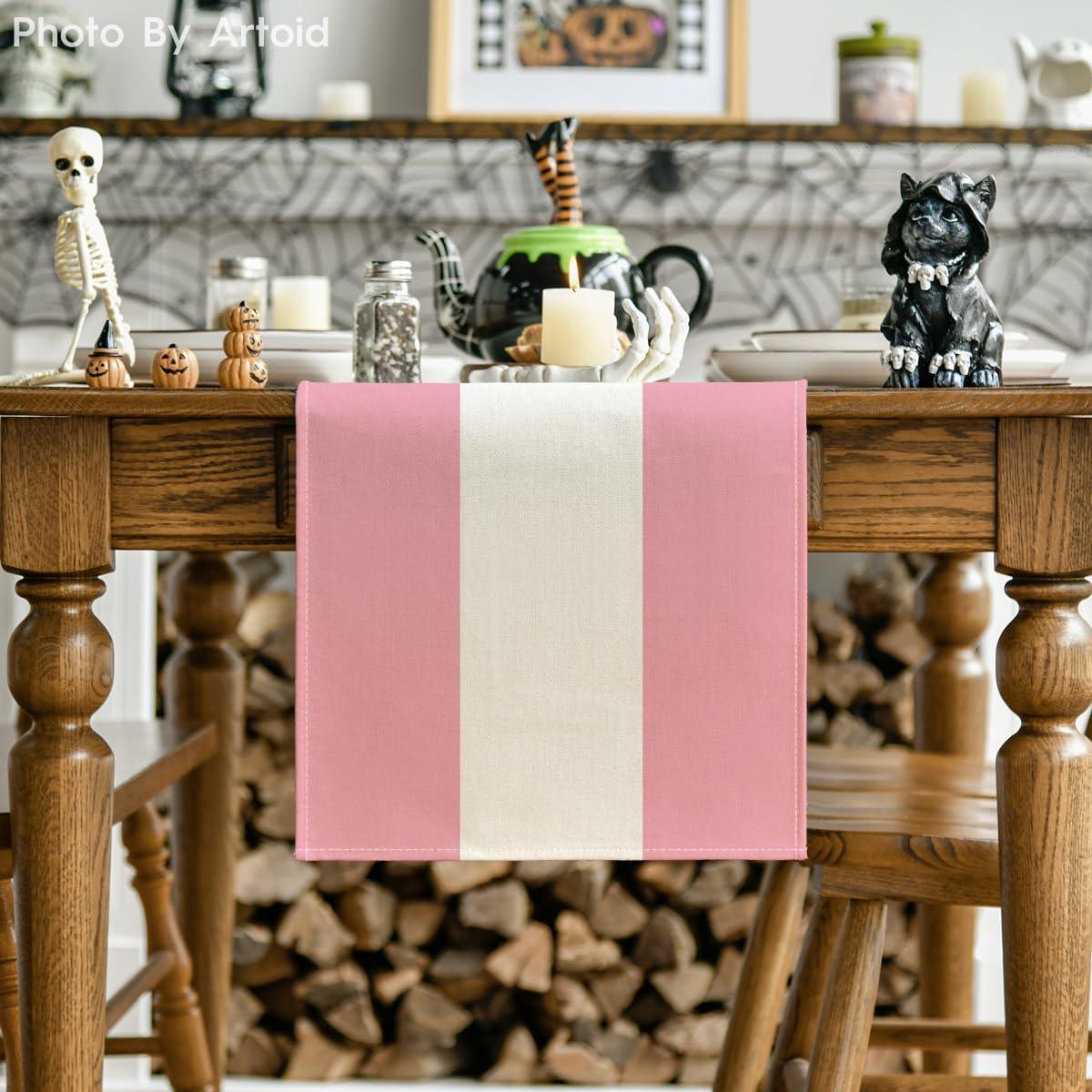 Artoid Mode Red Stripes 2025 New Year Christmas Table Runner, Seasonal Winter Holiday Kitchen Dining Table Decoration for Home Party Decor 13×72 Inch(Pink/White/Pink)