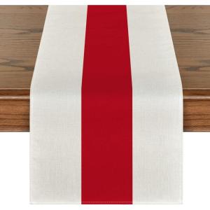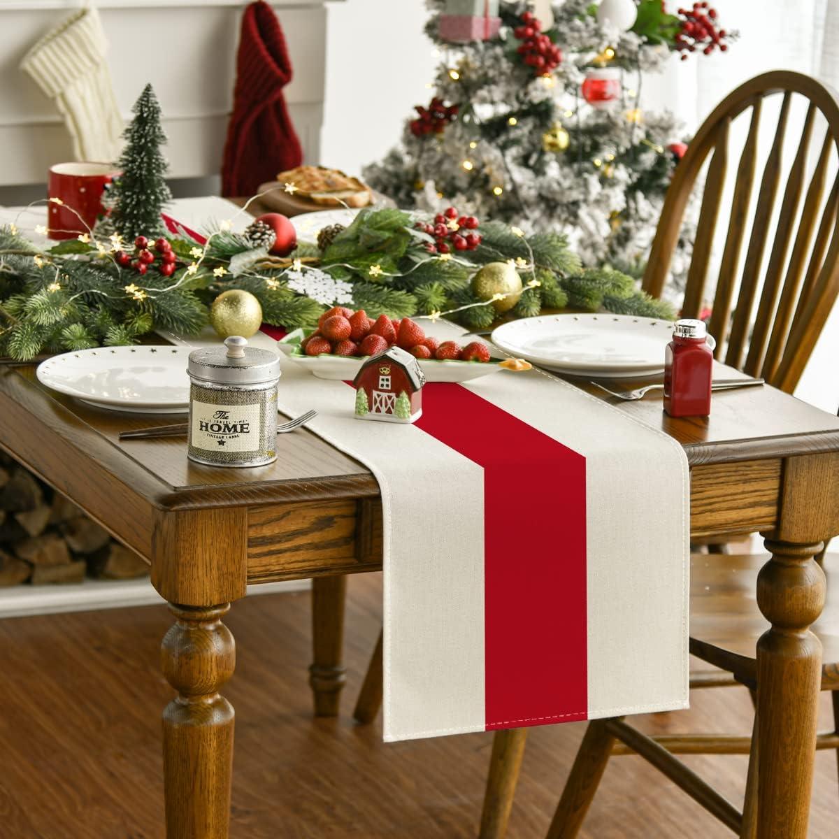 Artoid Mode Red Stripes 2025 New Year Christmas Table Runner, Seasonal Winter Holiday Kitchen Dining Table Decoration for Home Party Decor 13×72 Inch(Red/Beige)