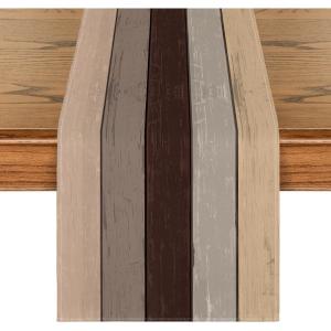 Artoid Mode Beige Xmas Tree Christmas Table Runner, Seasonal Winter Kitchen Dining Table Decoration for Home Party Decor 13×72 Inch(Wood)